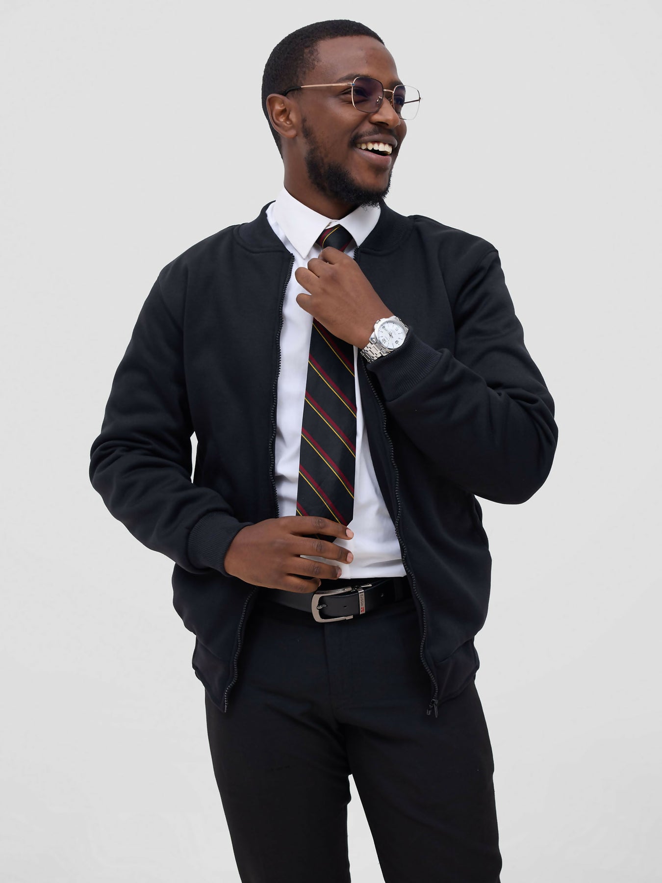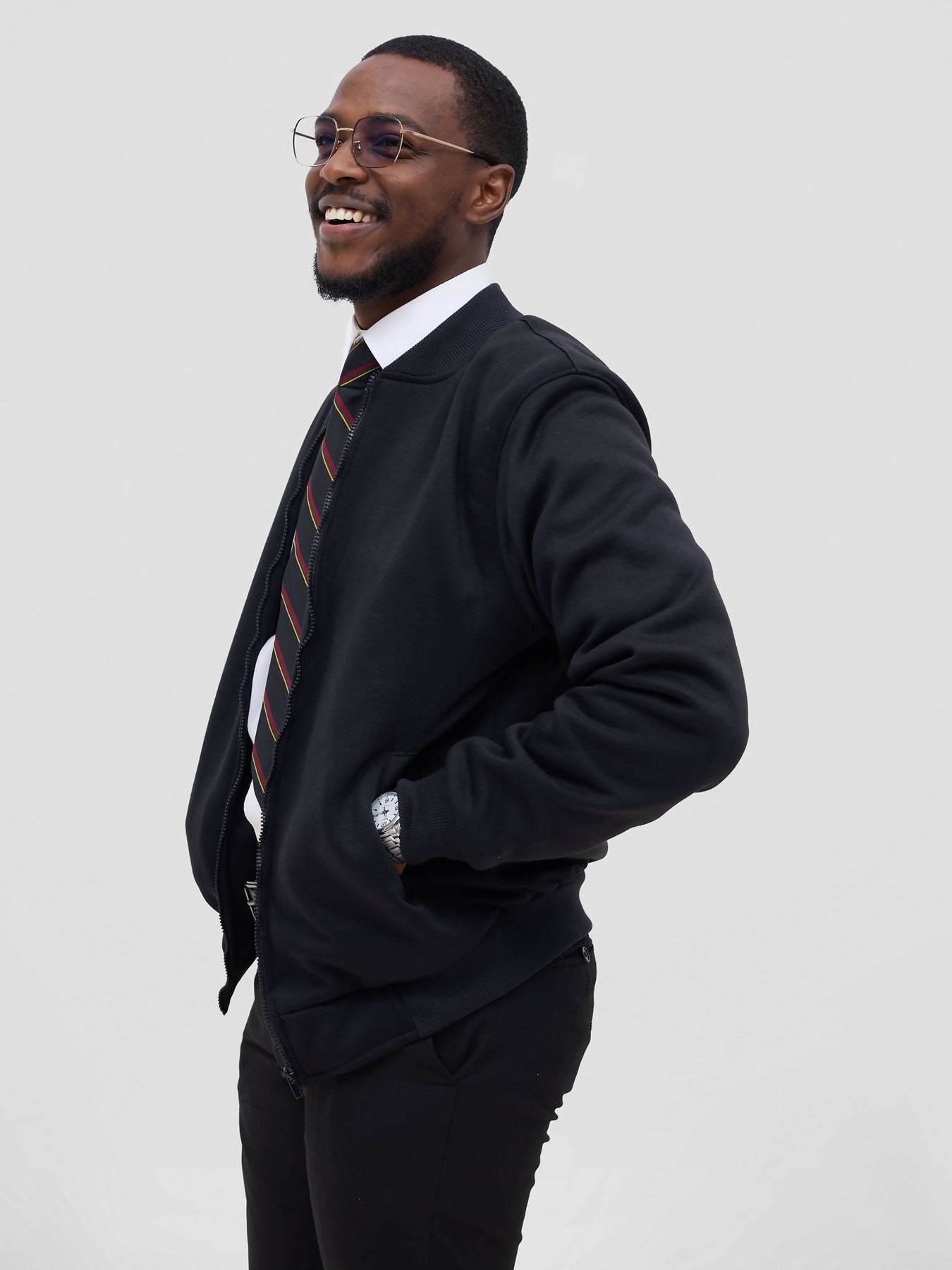 This  black school jacket with a zipper is a lightweight, breathable piece perfect for layering. It combines functionality with comfort, designed to provide just the right amount of warmth without overheating. The jacket’s vibrant black color evokes a sense of energy and brightness.