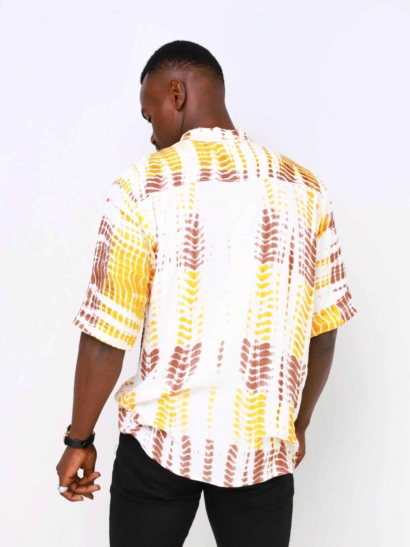 Vazi Afriq Tie & Dye Normal Collar Shirt - Orange / Brown - Shopzetu