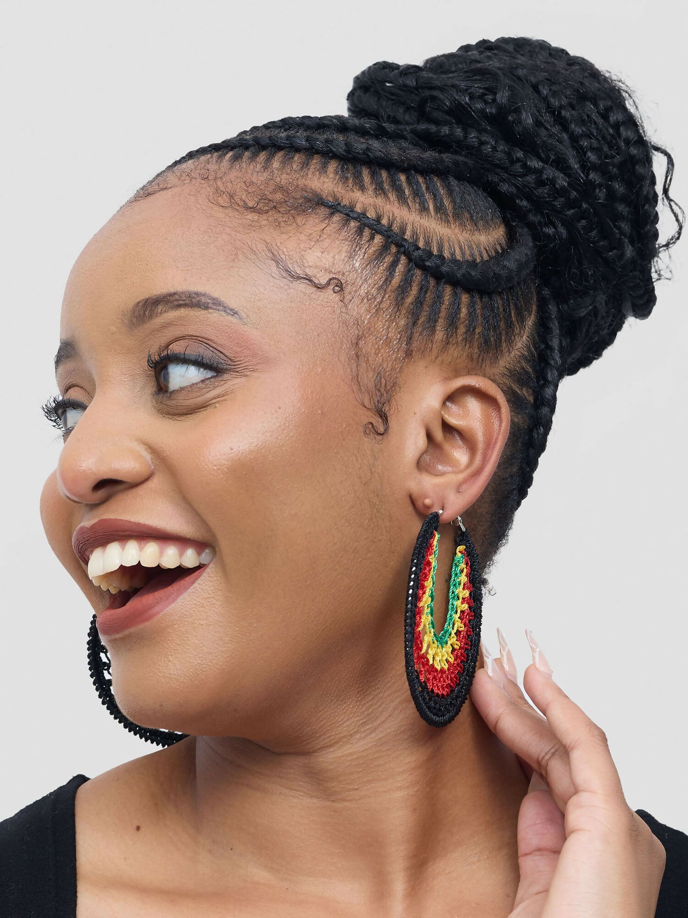 Introducing our Loop Rasta Earrings, a vibrant statement piece perfect for adding a bold touch to your outfit. These earrings are: