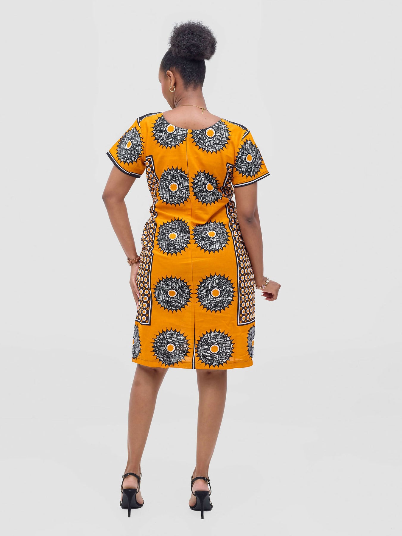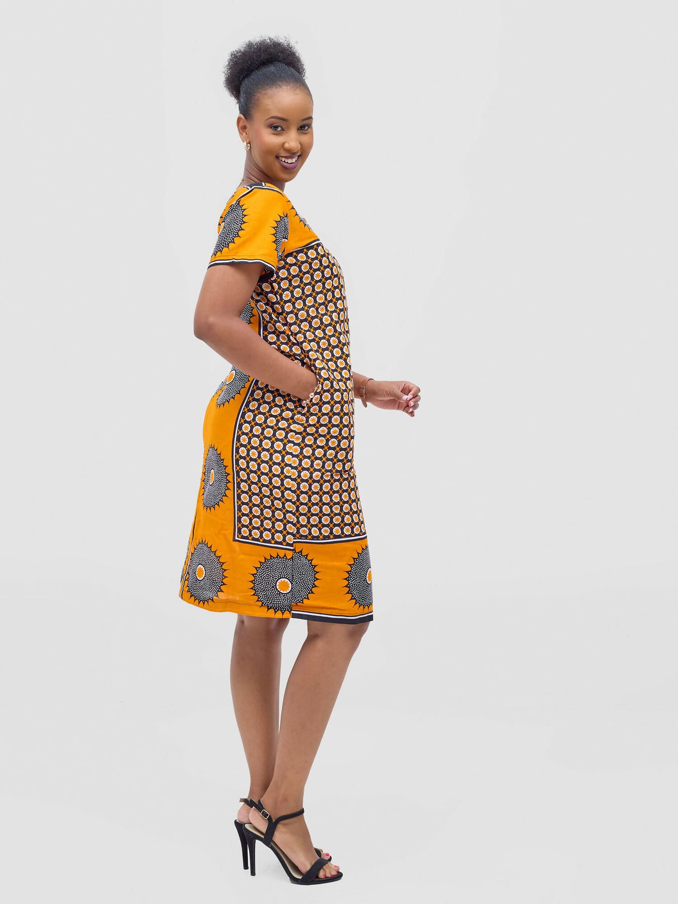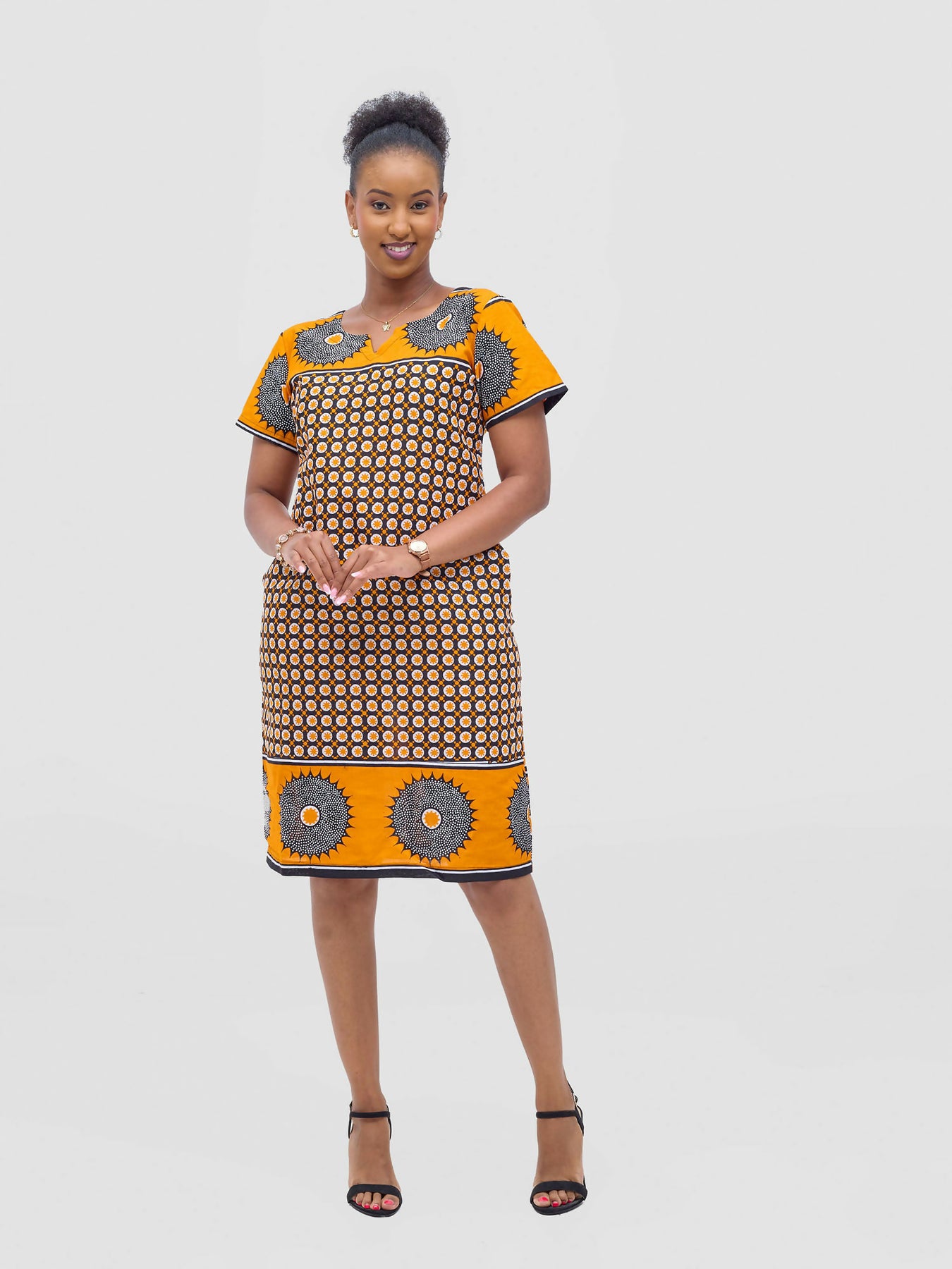Vivid Afrikana Khanga Shift Dress - Orange / White - Shopzetu