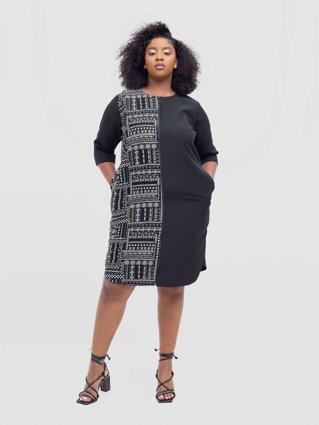 Vivid Afrikana Mizani Shift Dress - Black / White - Shopzetu