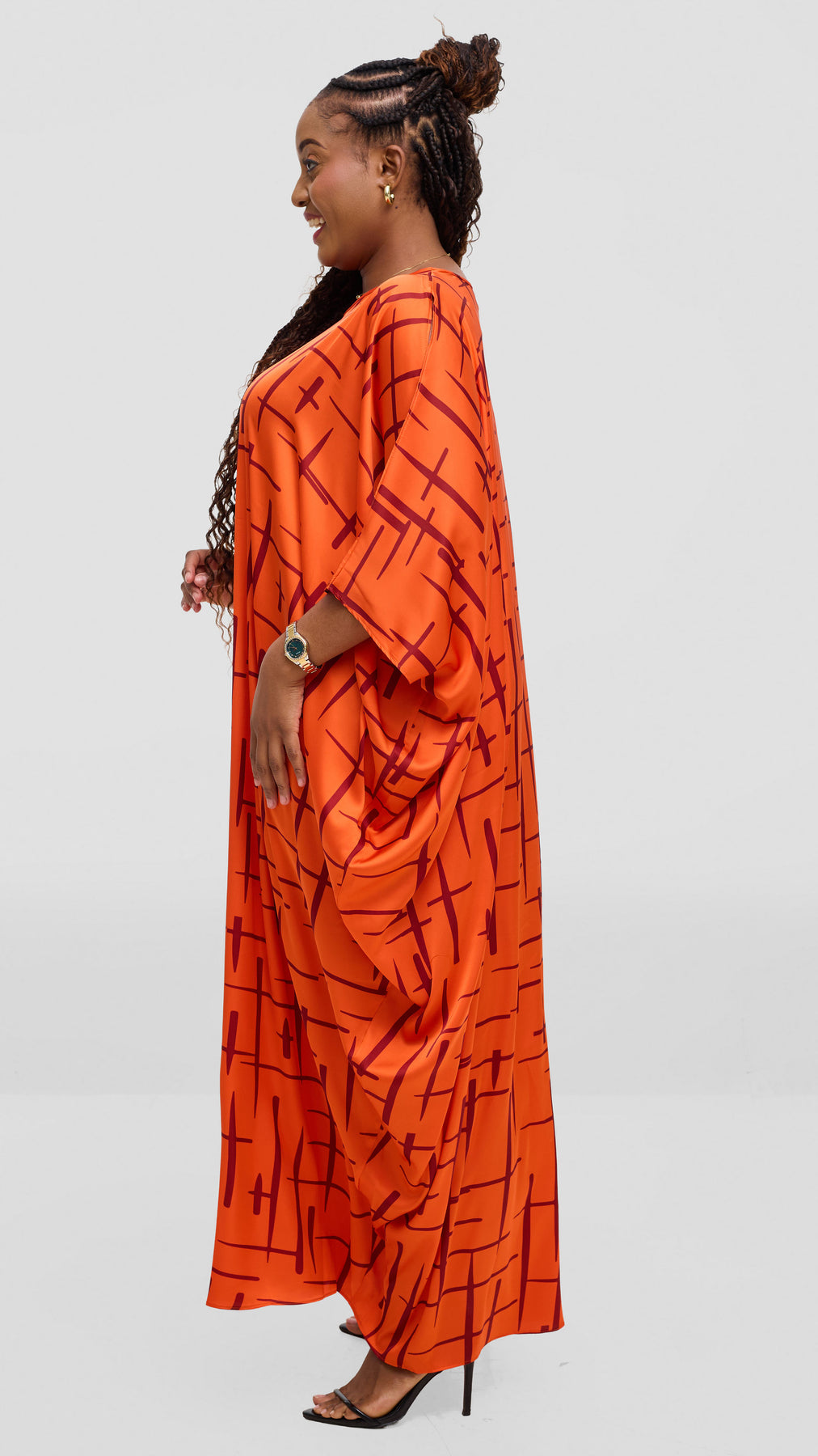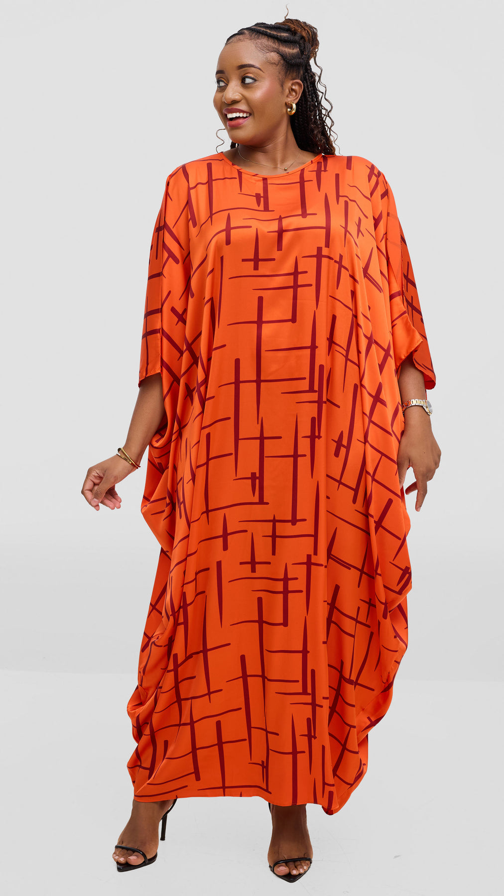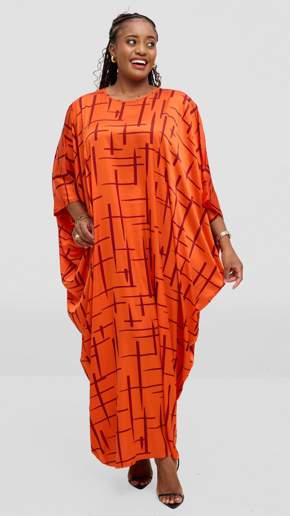 Elevate your evening wardrobe with the Vivo Lani Maxi Dress, crafted in luxurious satin that drapes beautifully against your skin. The striking orange and brown print brings artistic flair to this timeless silhouette, perfect for special occasions or sophisticated nights out. The flowing maxi length offers elegance and comfort, while the satin fabric catches light with every movement. A versatile piece that transitions seamlessly from celebration to celebration, this dress embodies understated luxury with a distinctly modern edge.