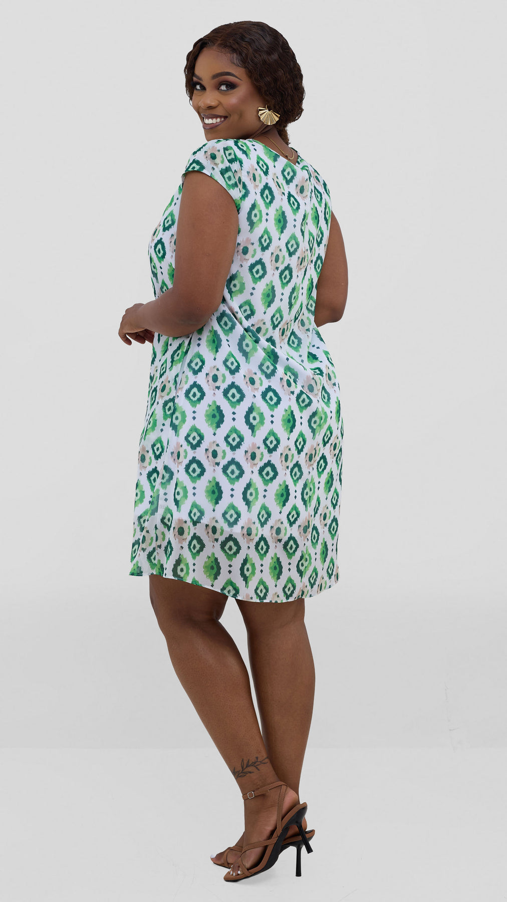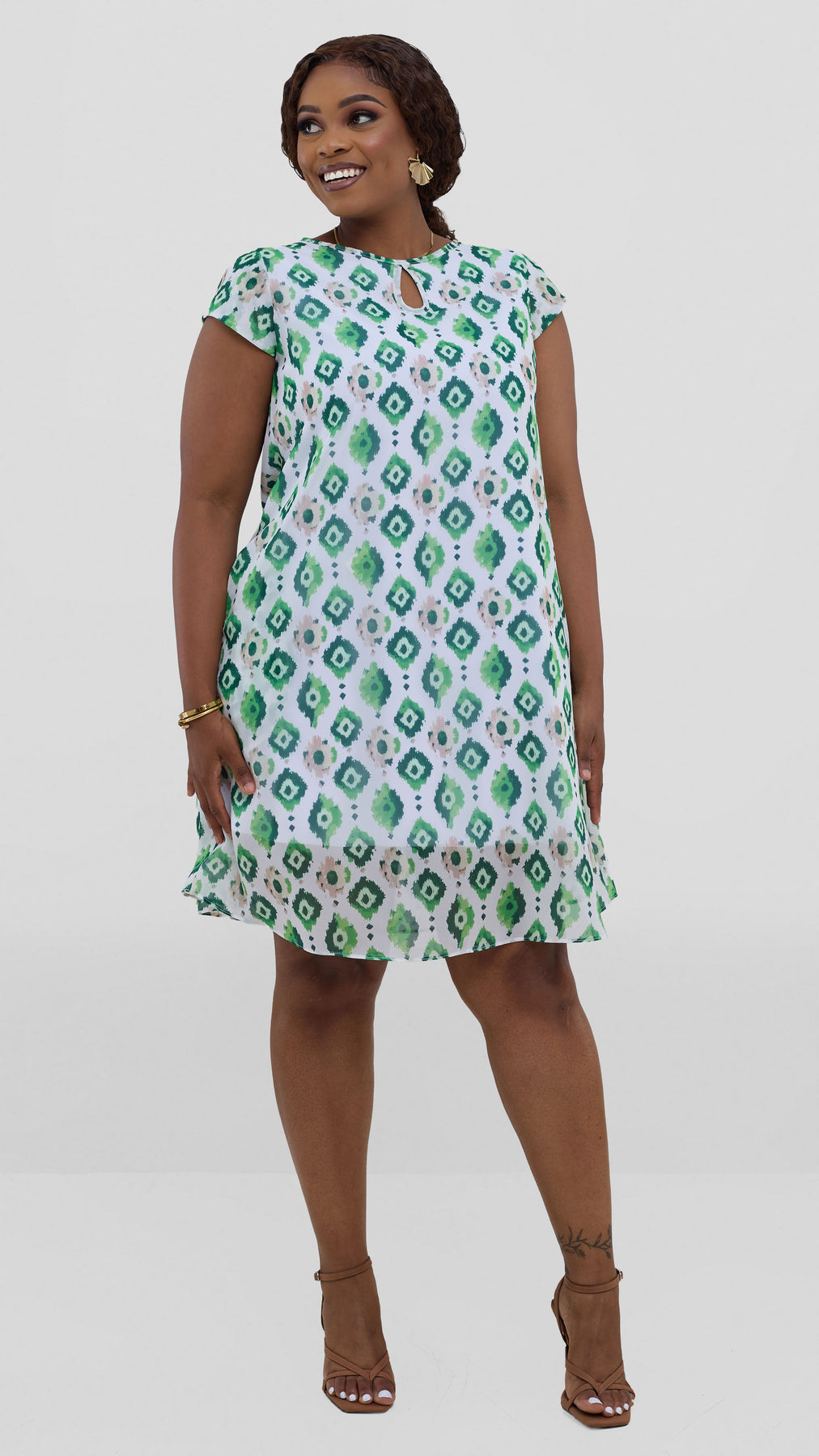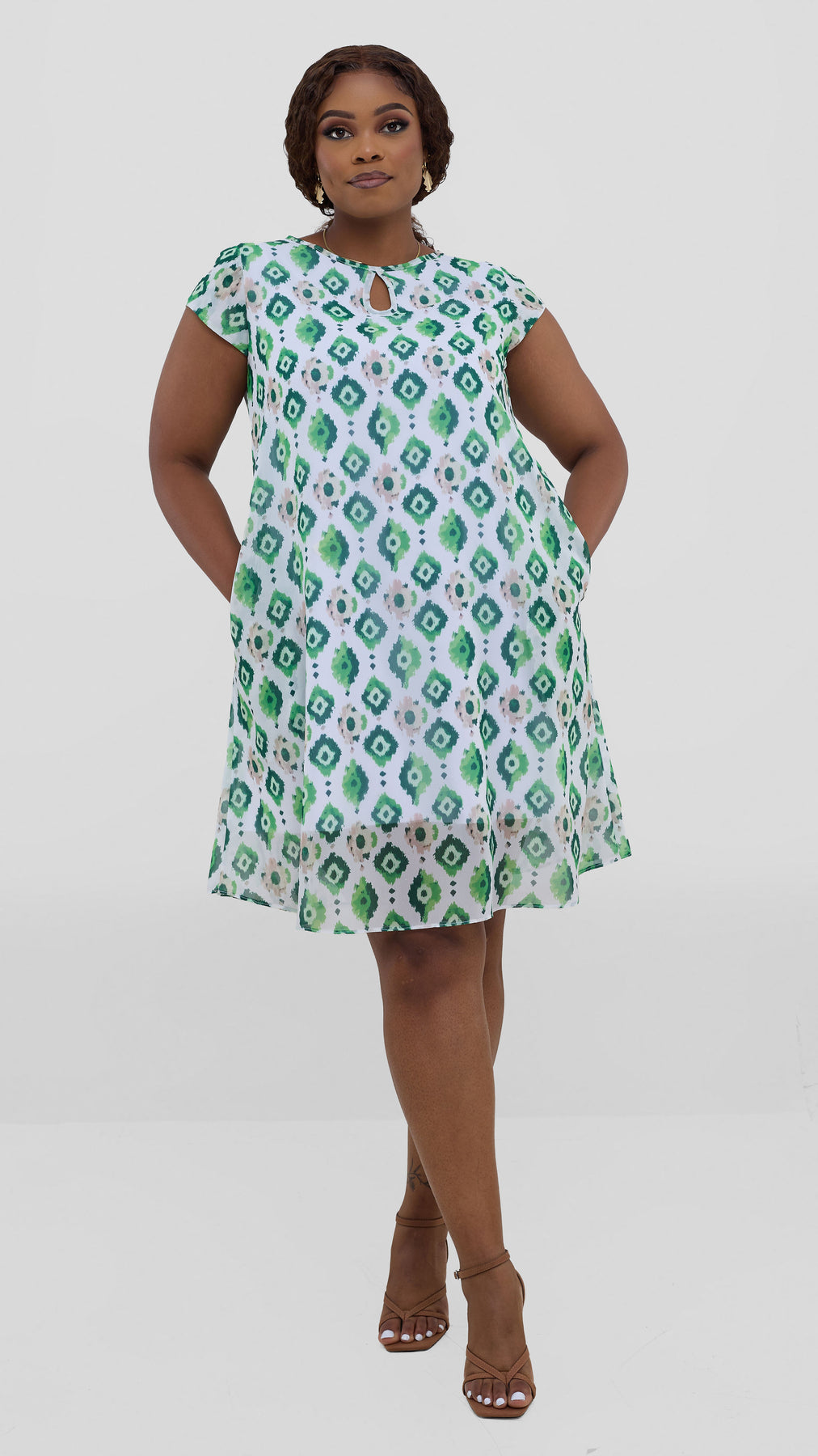 The Sierra cap sleeve tent dress combines understated sophistication with everyday wearability. Its airy chiffon fabric features a textured mint print that adds visual interest without overwhelming the design. With relaxed cap sleeves and a gently flowing silhouette, this dress flatters various body types while keeping you cool during warmer months. Style it solo for casual outings or layer it for more formal occasions. The soft mint tone pairs effortlessly with neutral accessories, making it a go-to piece for anyone seeking versatile, comfortable style.