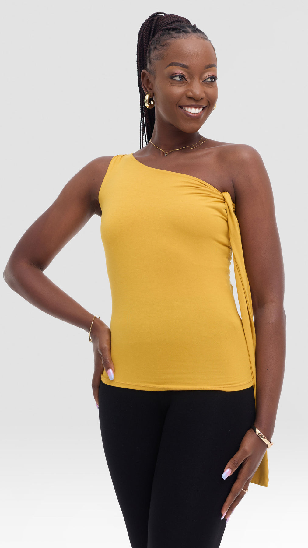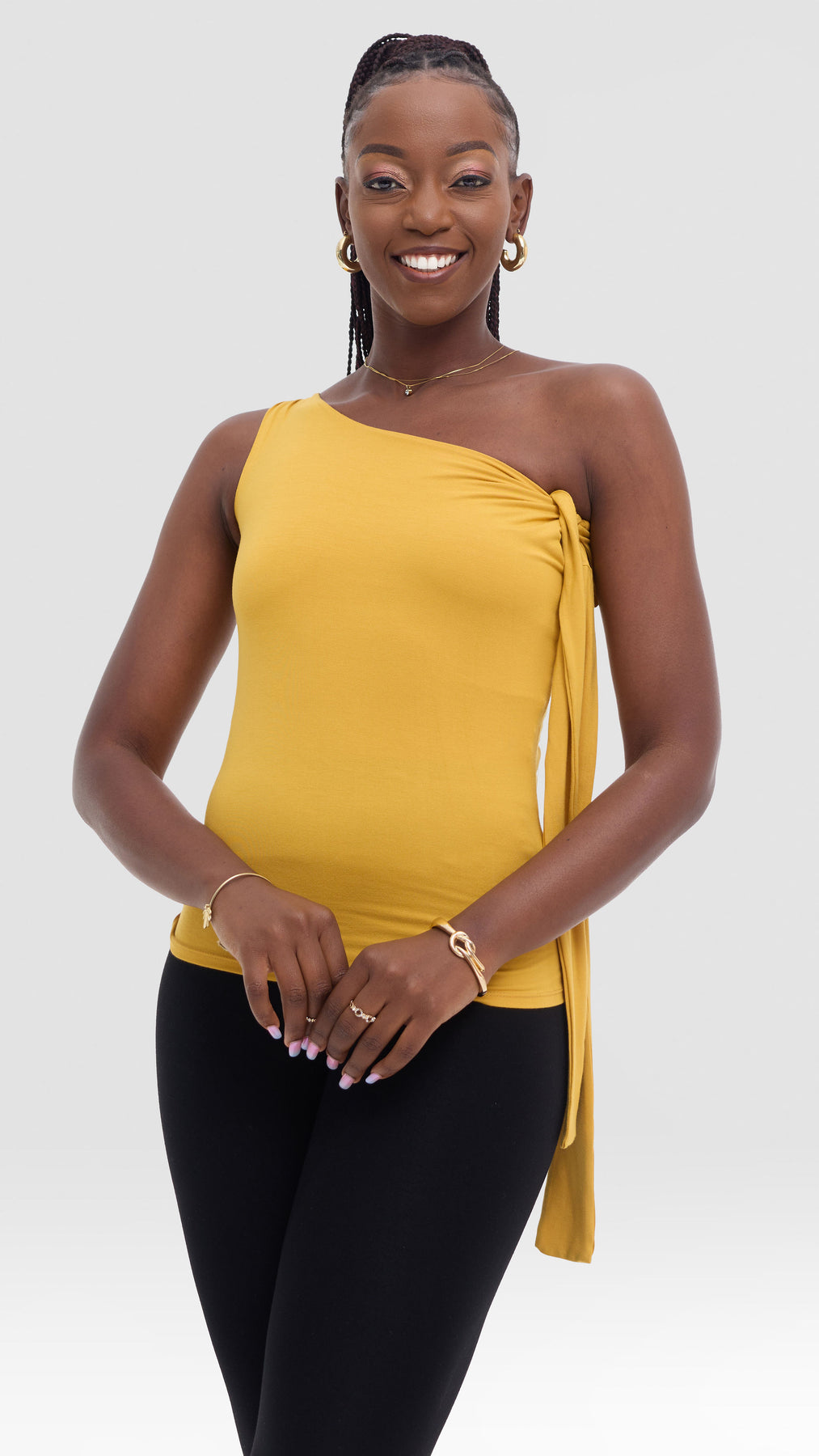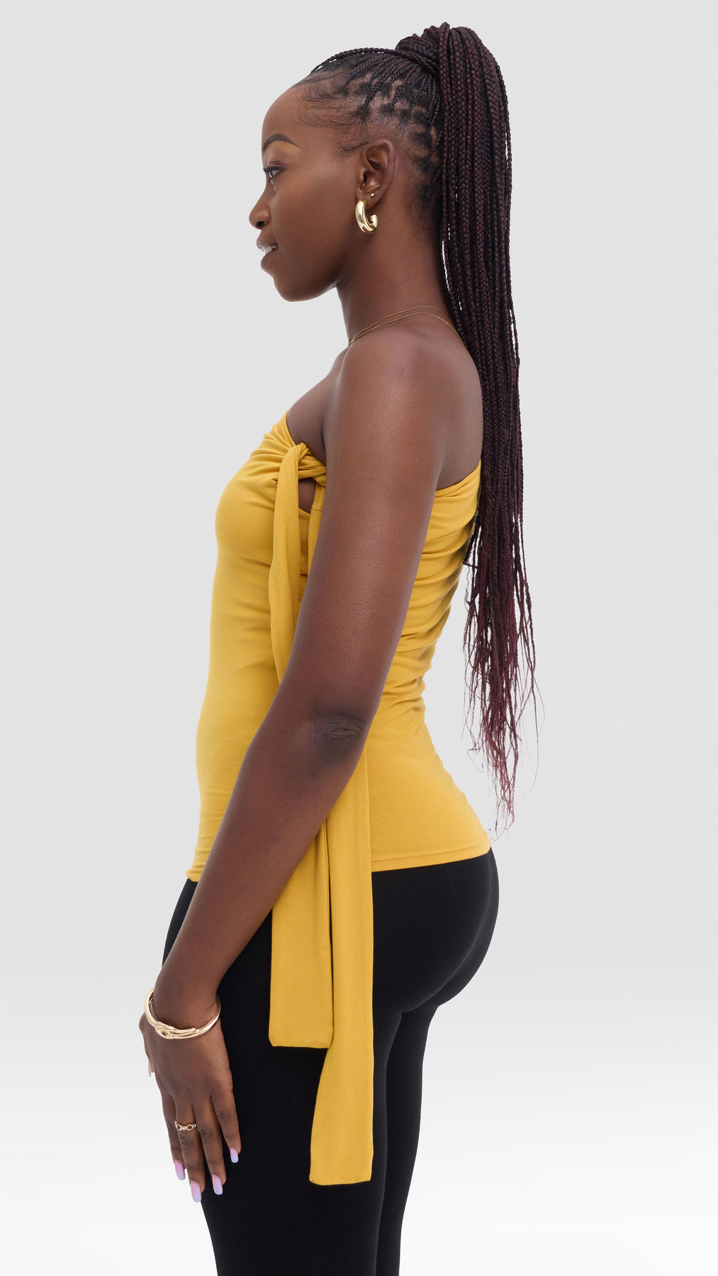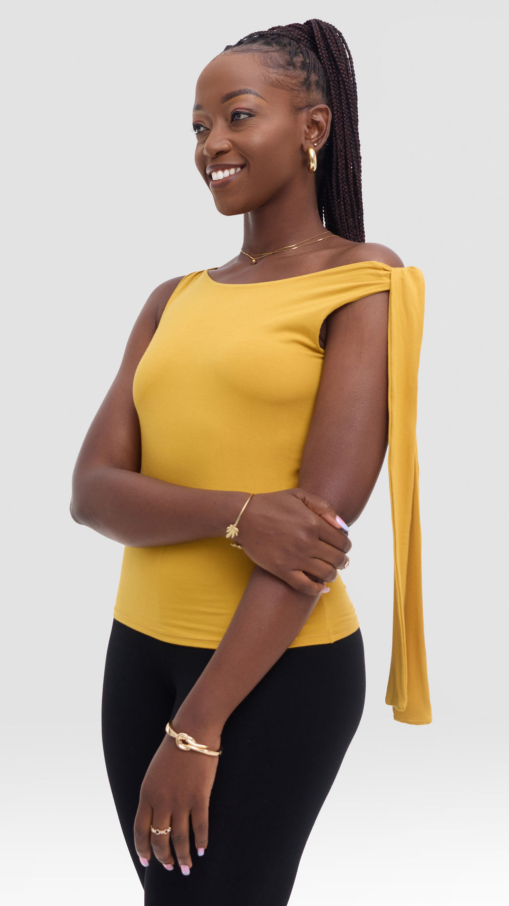 Elevate your everyday wardrobe with this versatile Studio Shoulder Tie Top, crafted from soft, breathable jersey fabric. The distinctive shoulder tie detail adds a modern twist to a classic silhouette, creating an effortlessly chic look. Perfect for layering or wearing solo, this mustard piece transitions seamlessly from day to night. The relaxed fit ensures comfort without compromising on style, making it an essential addition to your collection.