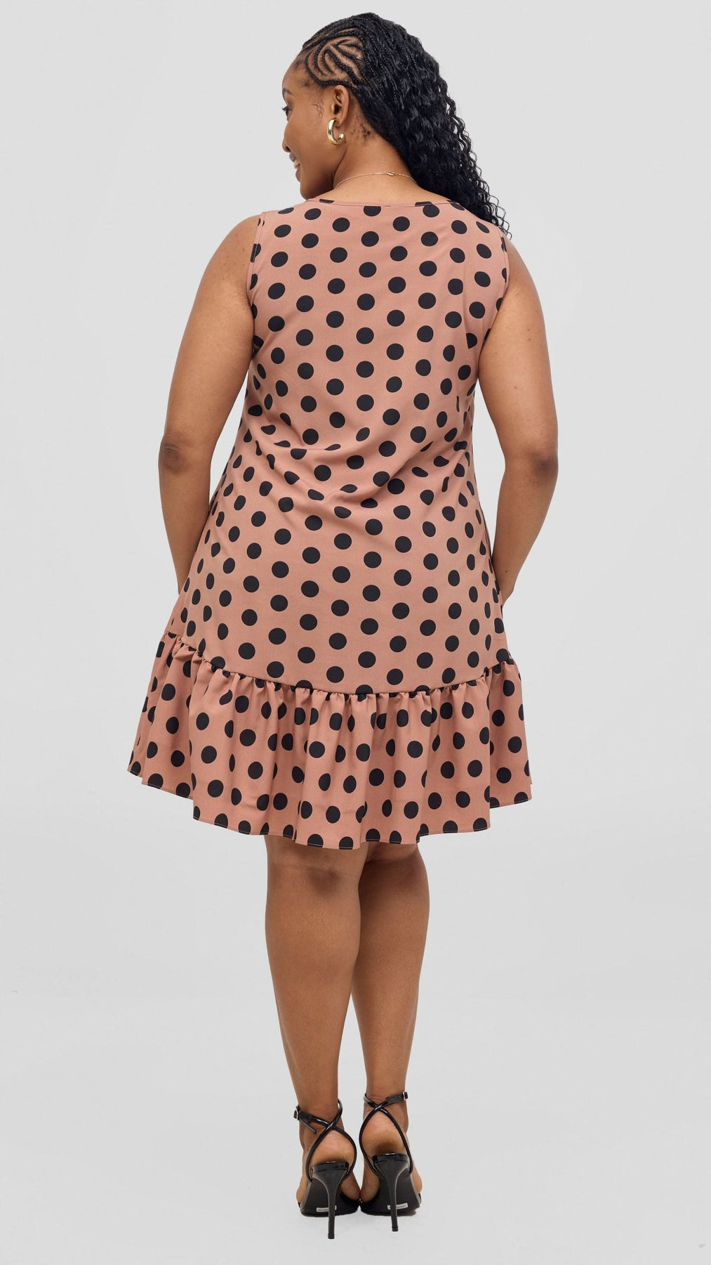 Vivo Dalia Sleeveless Gathered Tent Dress - Taupe / Black Print - Shopzetu