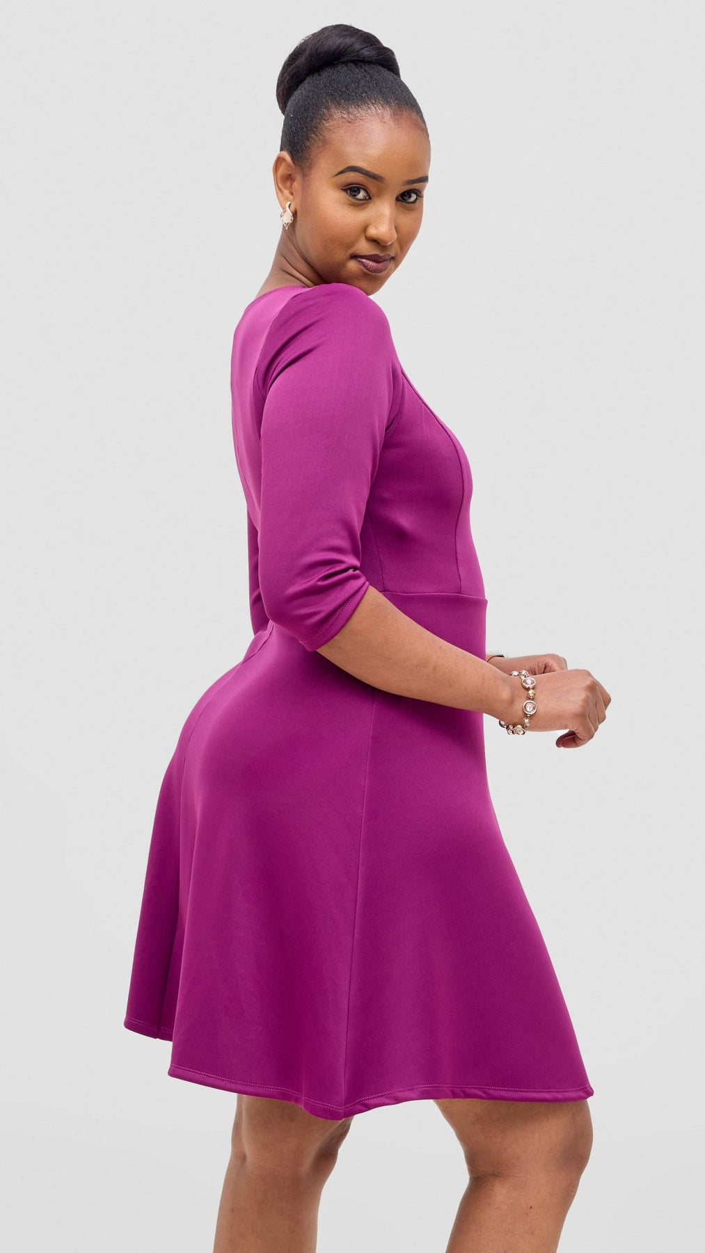The Vivo Diella 3/4 Sleeve A-Line Dress in dark purple offers a refined silhouette that effortlessly transitions from day to night. Its elegant cut flatters every figure, while the versatile hue complements a range of accessories. Perfect for both casual outings and more formal occasions, this dress combines comfort with timeless style.