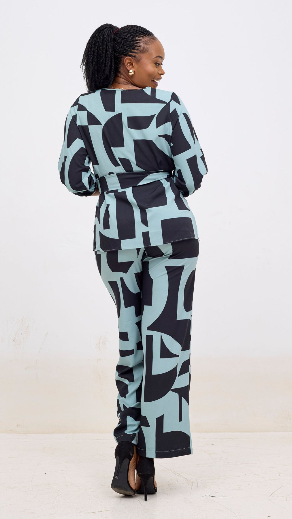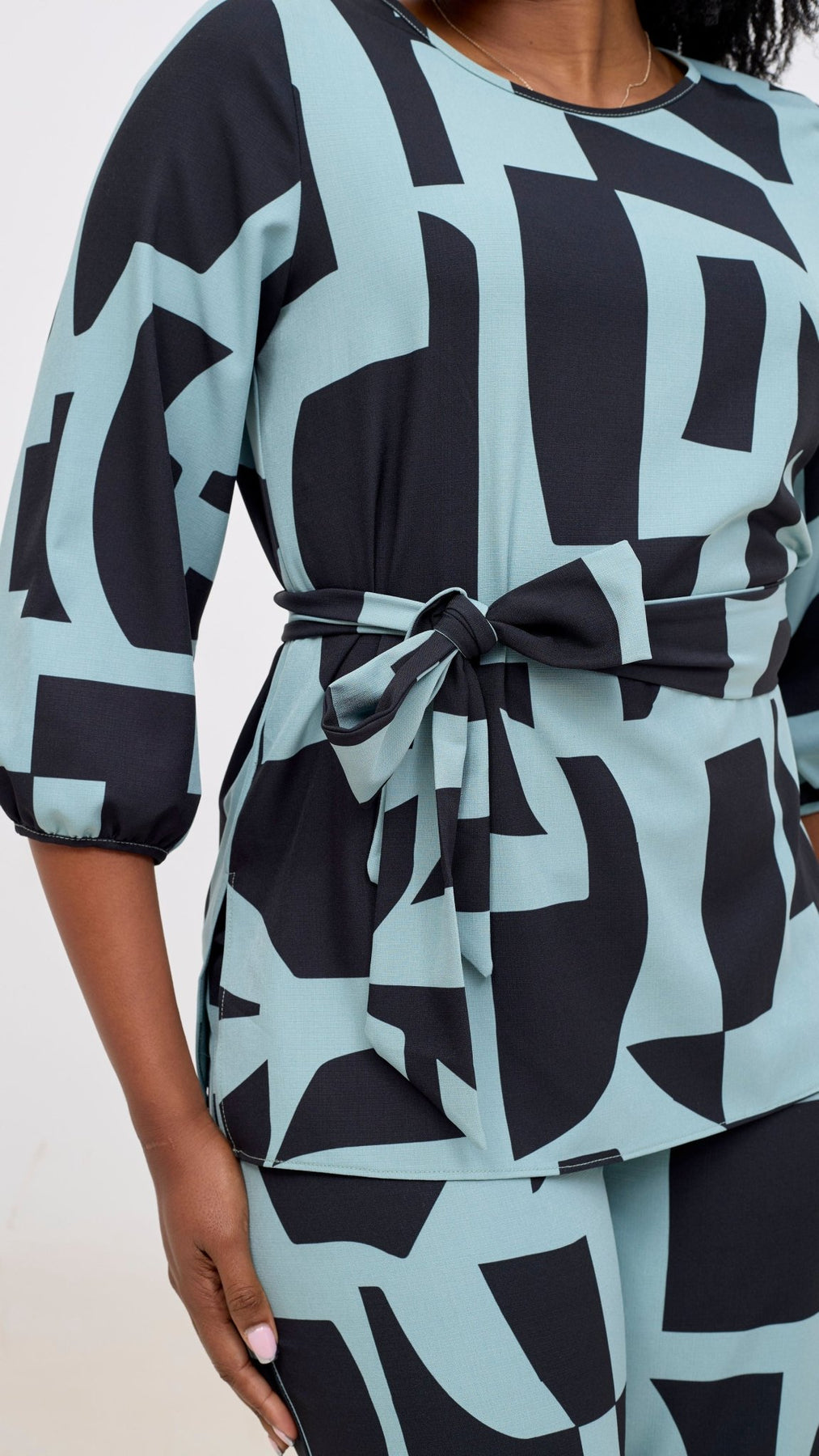 Vivo Kani Bishop Sleeve Top - Mint / Black Dashen Print - Shopzetu