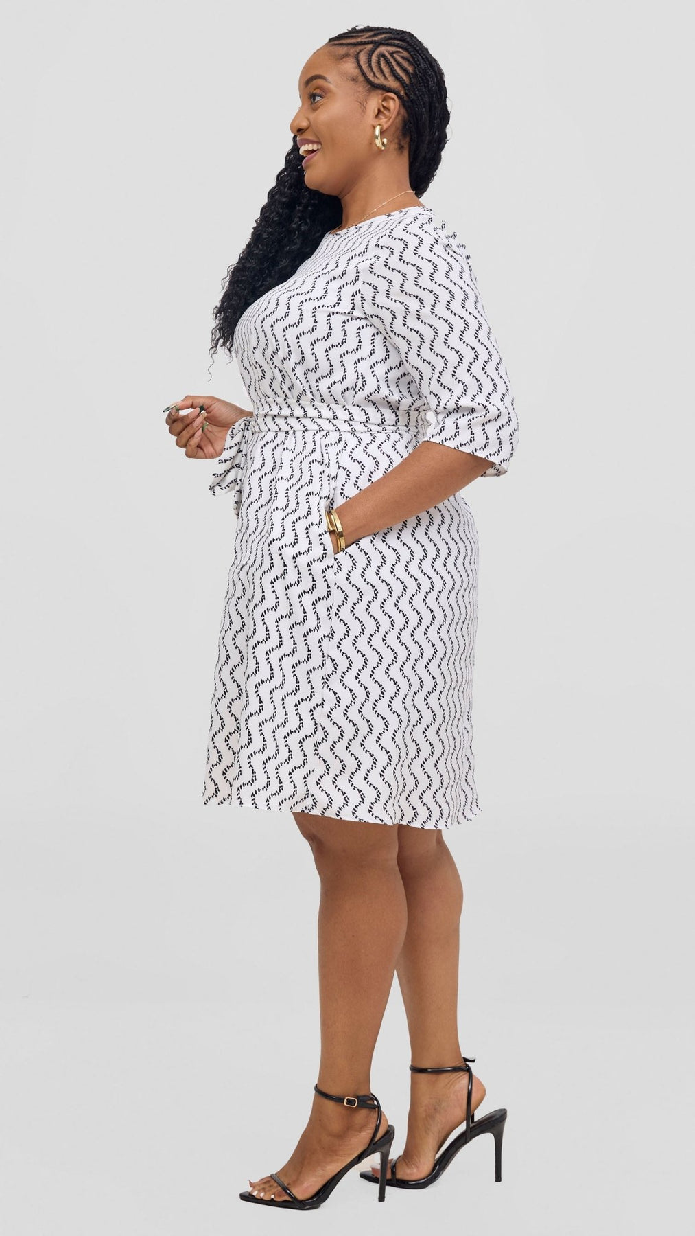 Vivo Laika 3/4 Sleeve Tent Dress - White / Black Print - Shopzetu