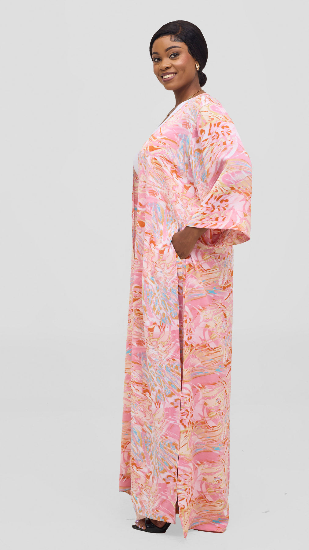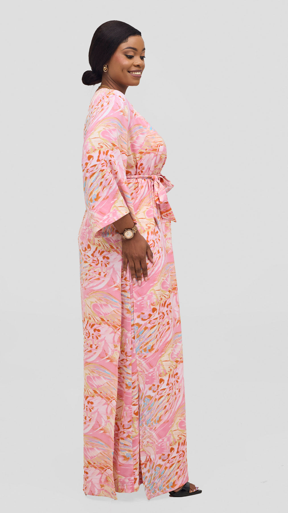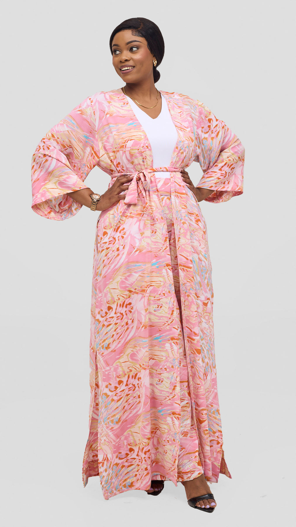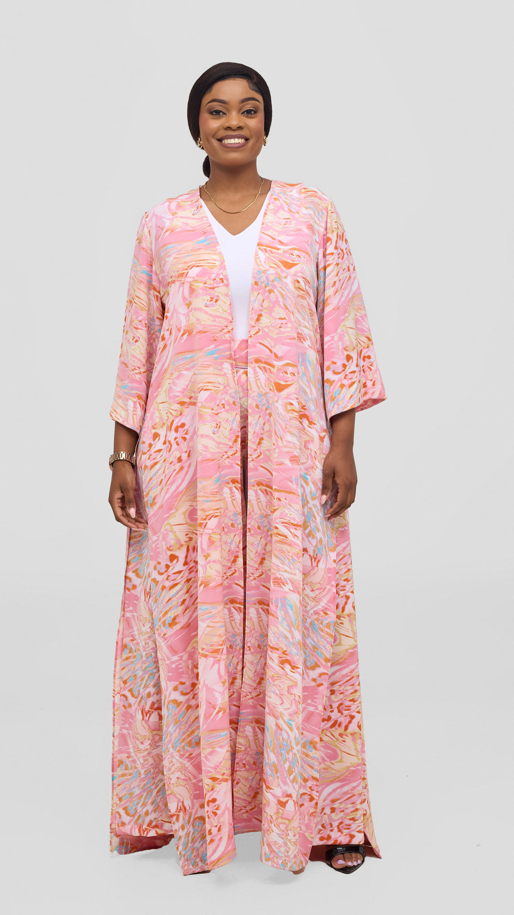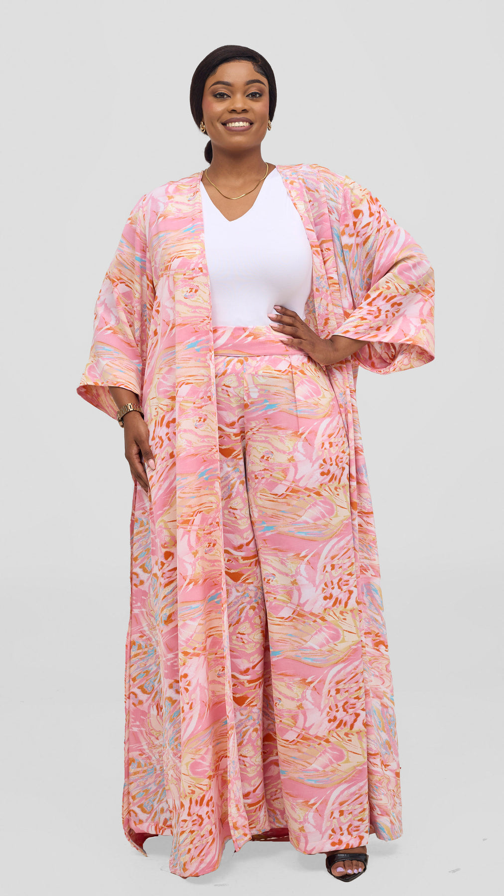 Make a striking impression with the Vivo Alek High Slit Kimono in vibrant pink and orange. This versatile piece can be effortlessly worn on its own for a bold, stylish statement or paired with matching pants for a polished, coordinated look. The high slit adds an elegant touch, enhancing movement and confidence wherever you go.
