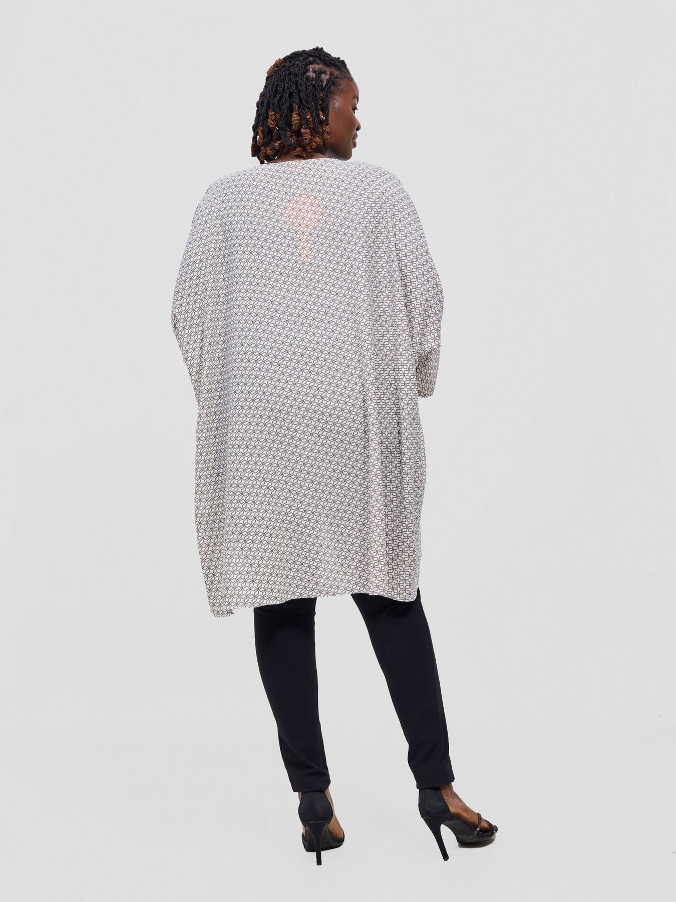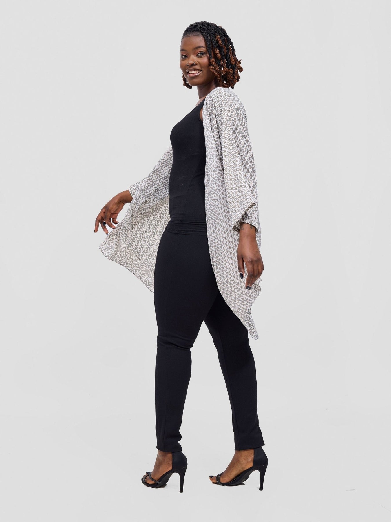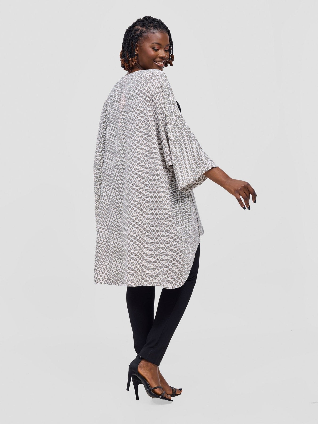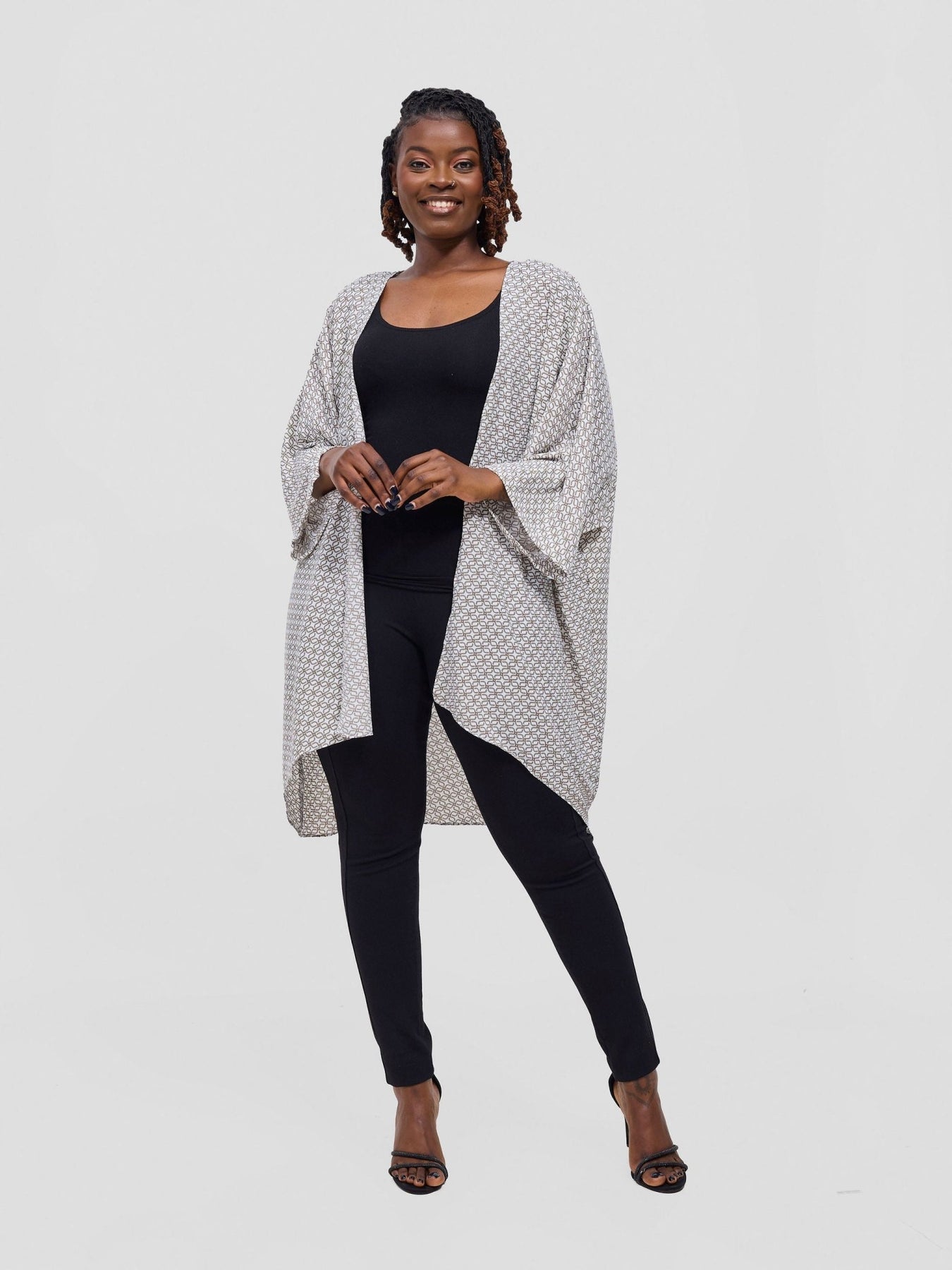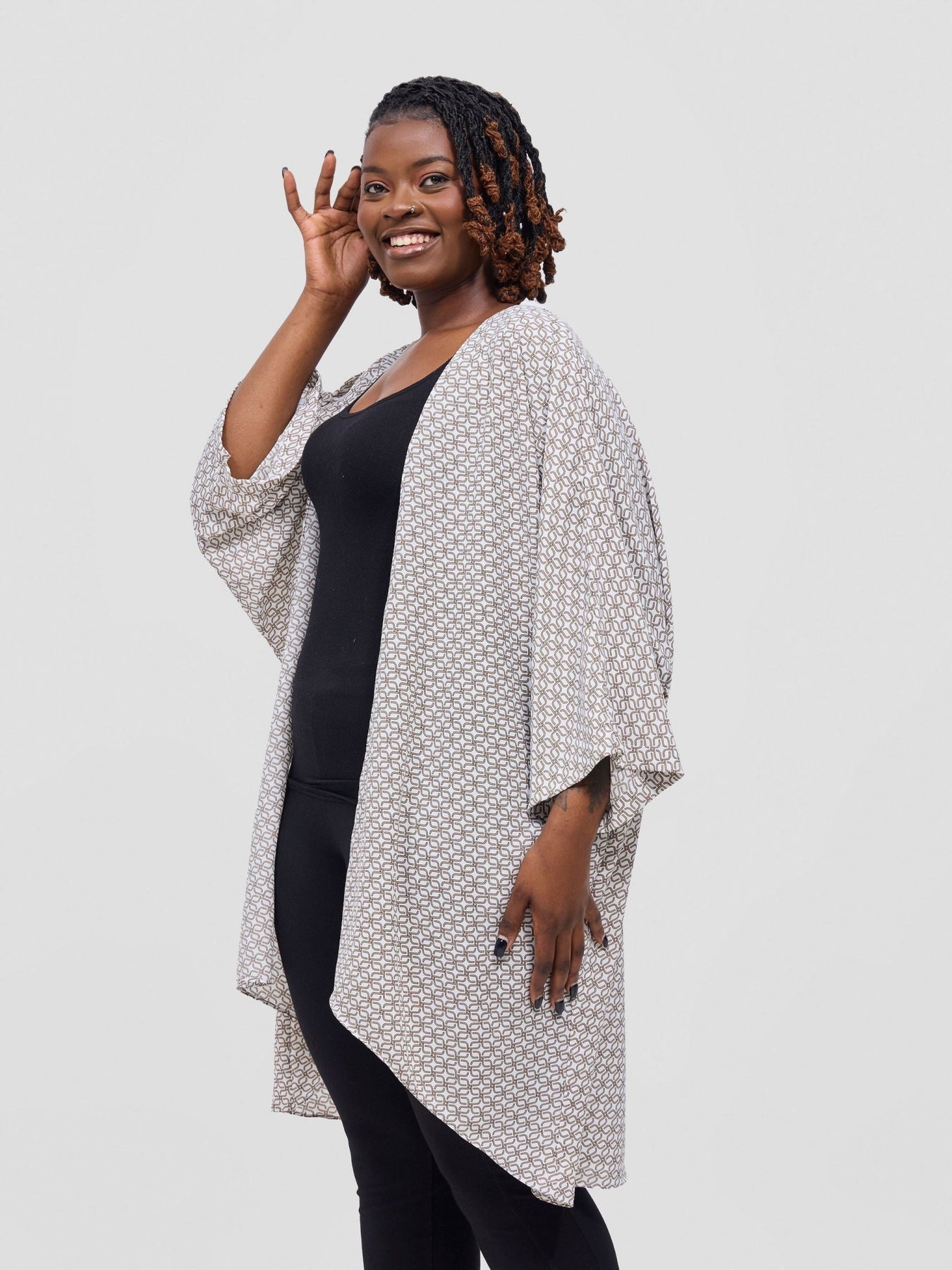 Pelia Kimono - Taupe / White Meni Print - Shopzetu