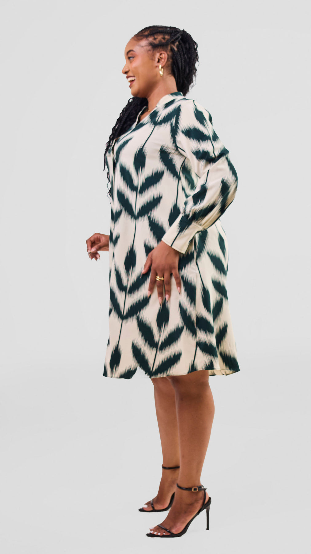 Vivo Kani Tent Shirt Dress - Dark Green / Cream Print