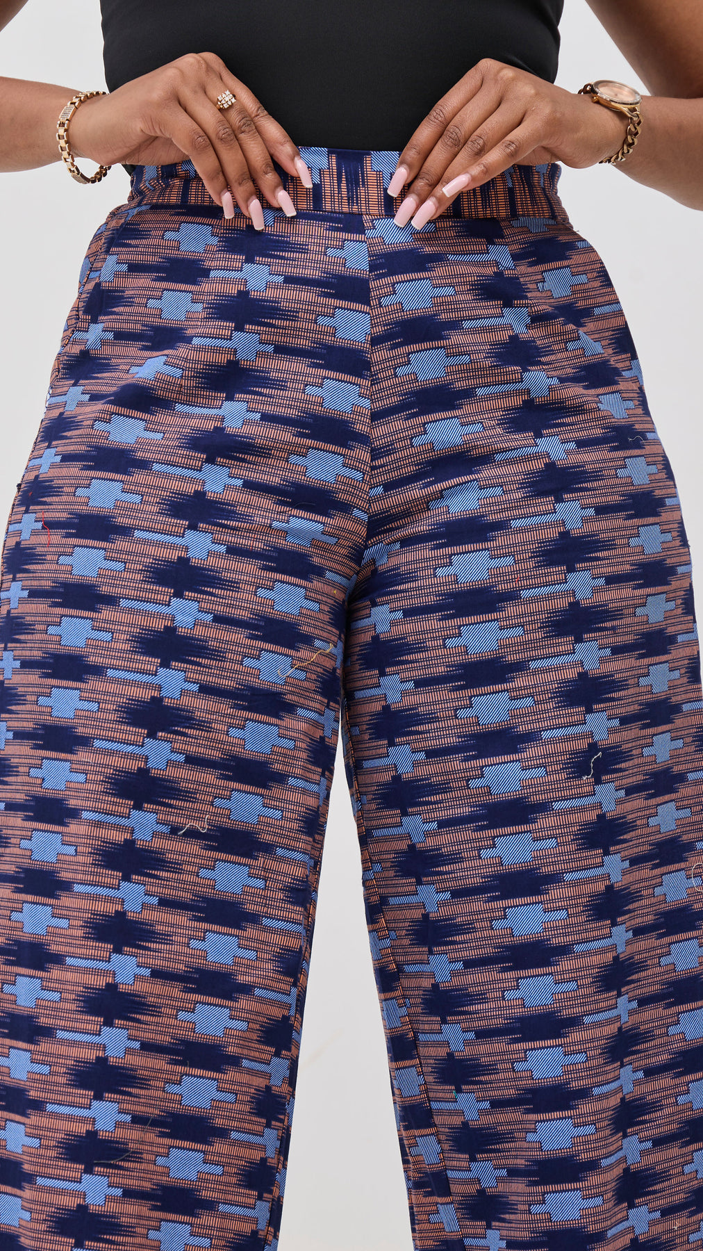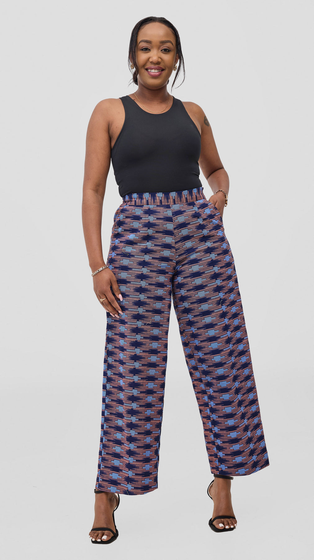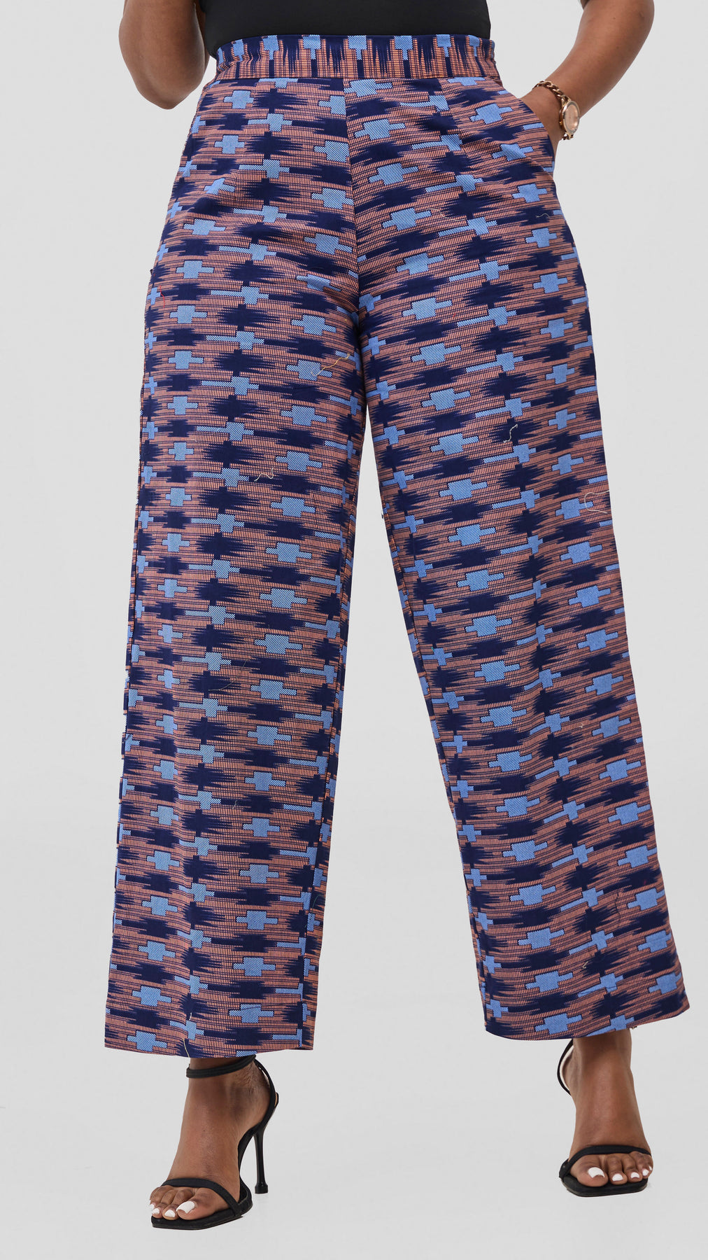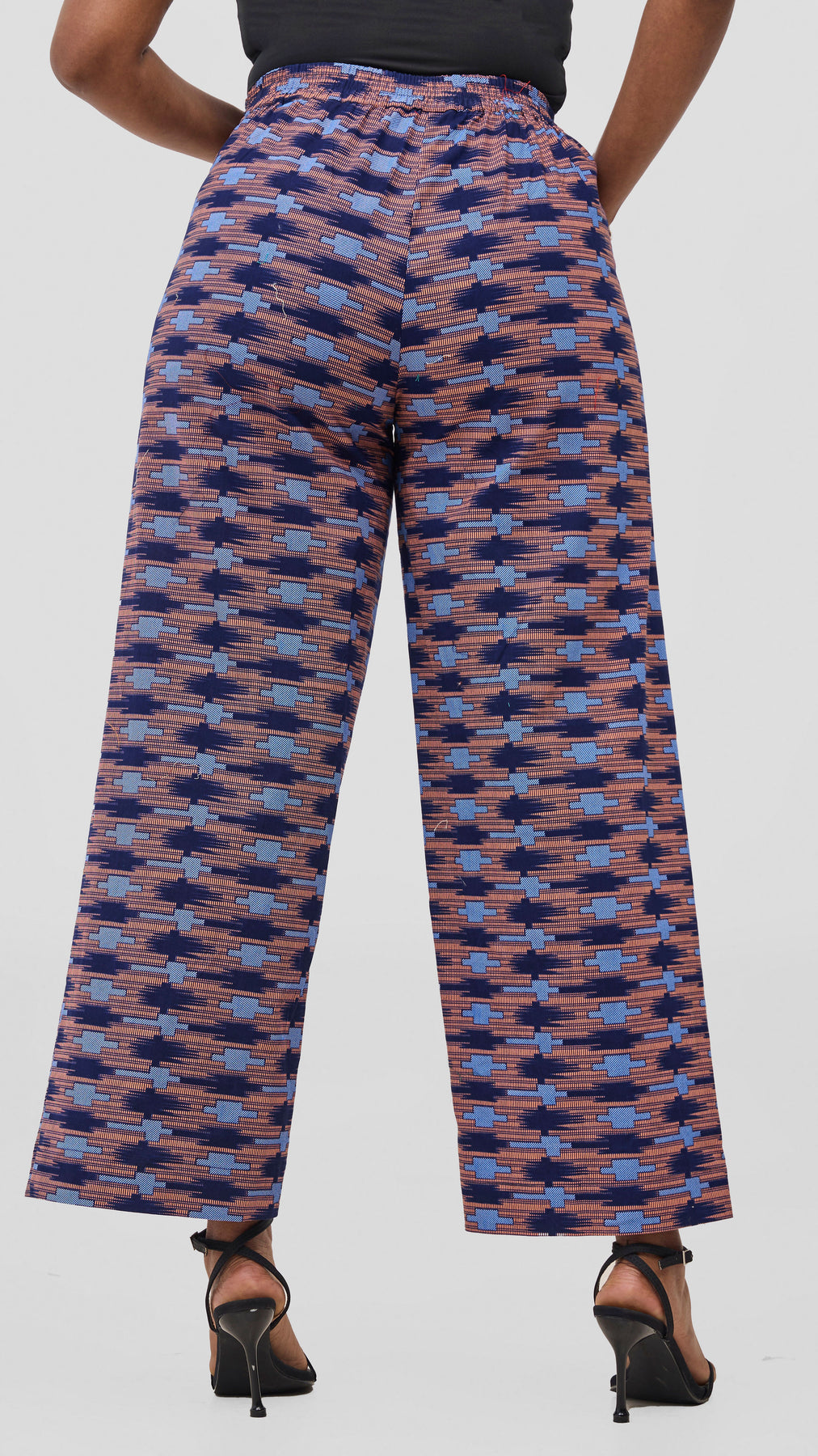 The Vivo Kitenge Wide Leg Pants in Navy and Pink Ara Print offer a stylish and comfortable fit perfect for any occasion. Designed with a wide leg cut, they provide ease of movement while showcasing vibrant, eye-catching patterns. Pair these pants with the matching jacket for a polished, coordinated look or wear them solo to let the bold print stand out effortlessly. Ideal for those who appreciate both fashion and comfort in their wardrobe.