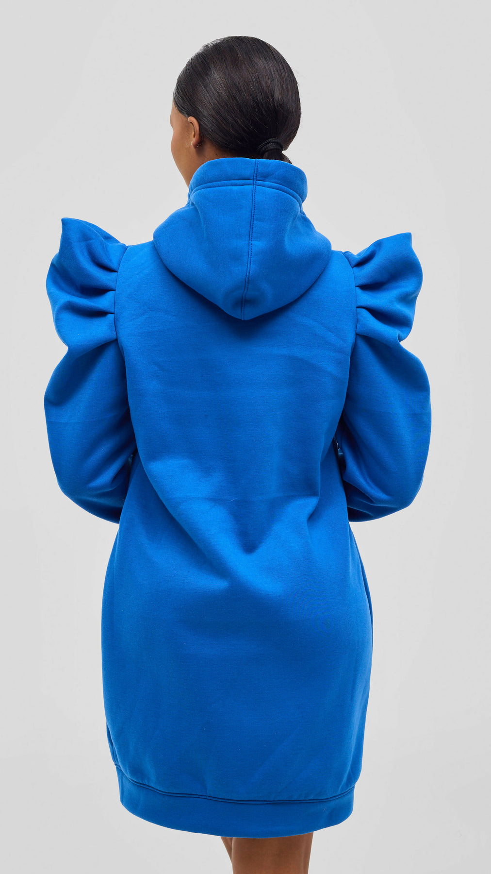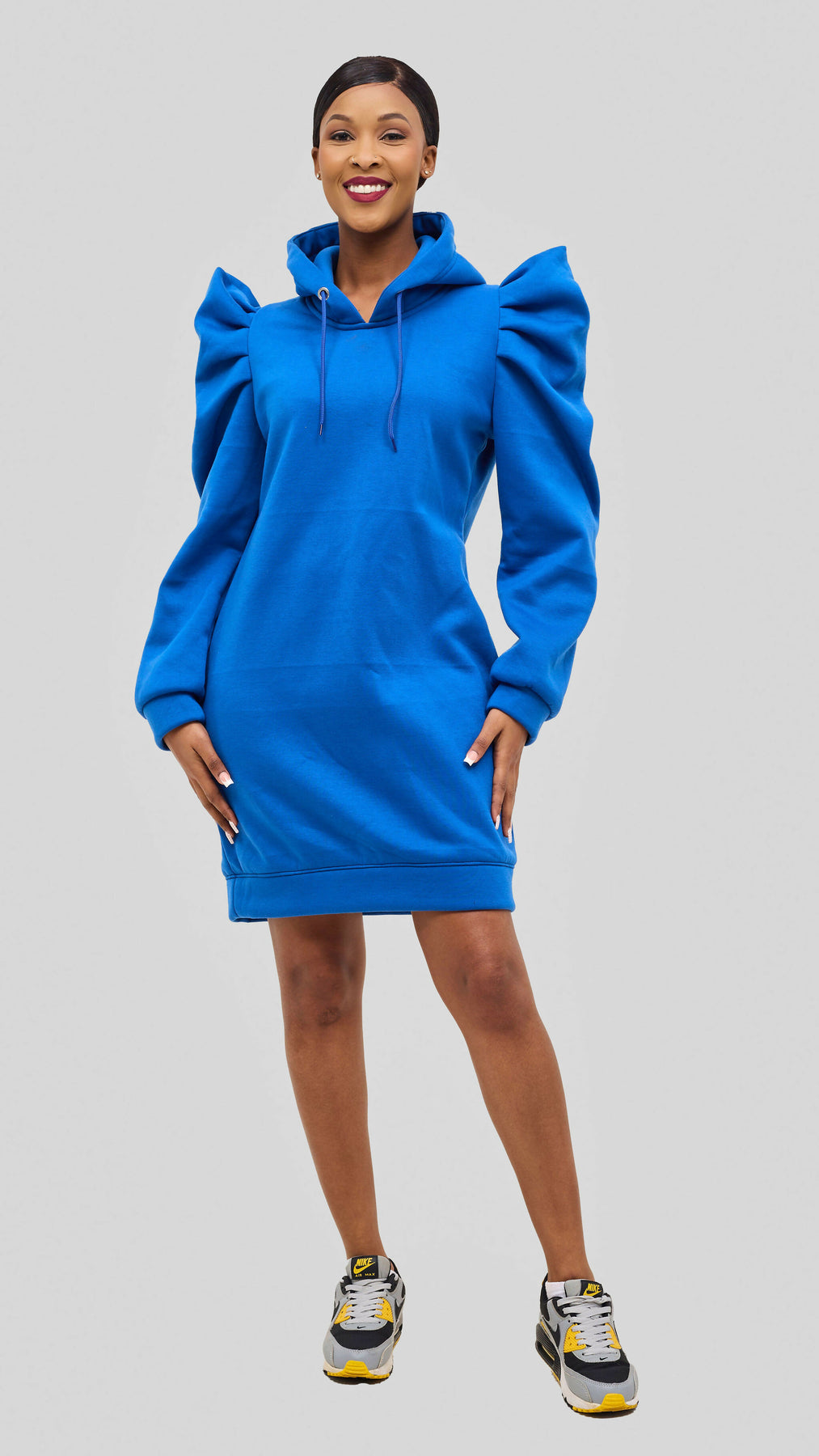 Step into effortless style with the “Call Me Classy” hoodie dress – a bold statement piece designed for the modern woman who loves to keep it cozy without compromising on flair. Crafted in a striking royal blue hue, this hoodie dress features dramatic puffed sleeves that add a touch of elegance and edge to your everyday wardrobe.