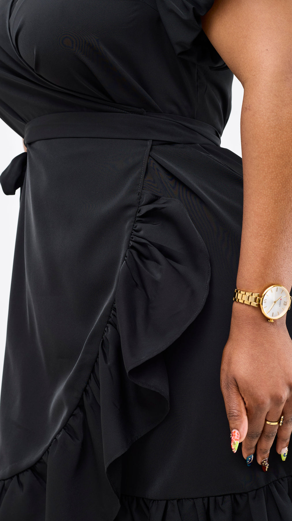 The Vivo Hadiya Wrap Dress in Black Print offers a flattering fit with its wrap design, allowing you to adjust for comfort and style. Its unique color combination and intricate pattern make it a standout choice for both casual and semi-formal occasions. Lightweight and easy to wear, this dress supports your confidence while keeping you comfortably elegant throughout the day.