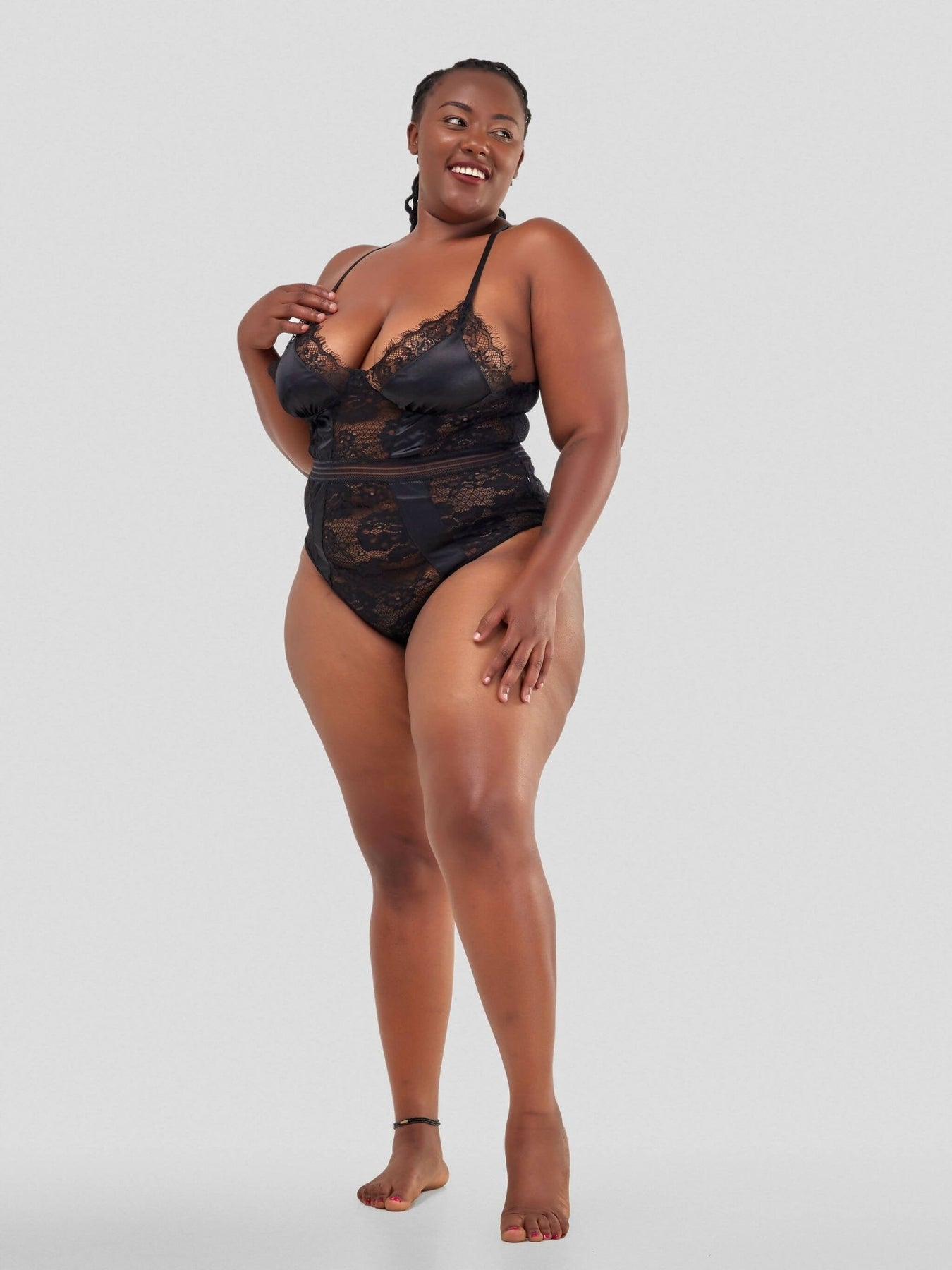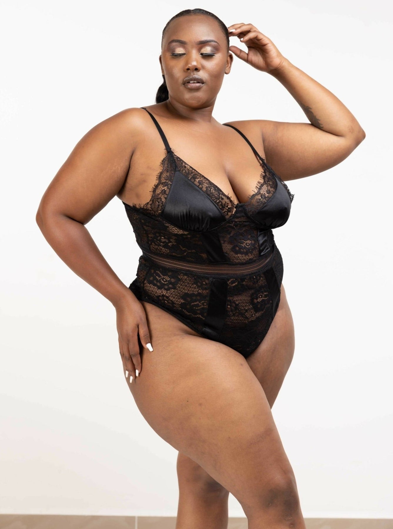 Intimates Kenya High Quality Eyelash Lace Splice Sexy Bodysuit - Black - Shopzetu
