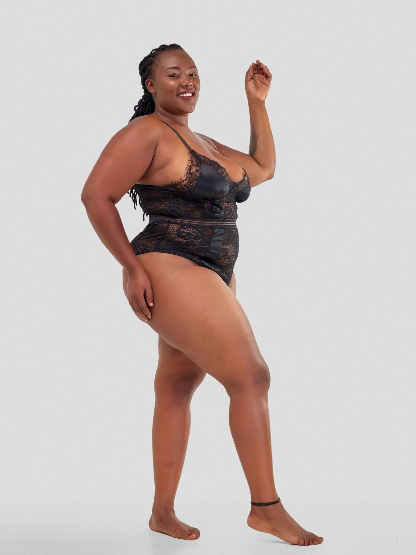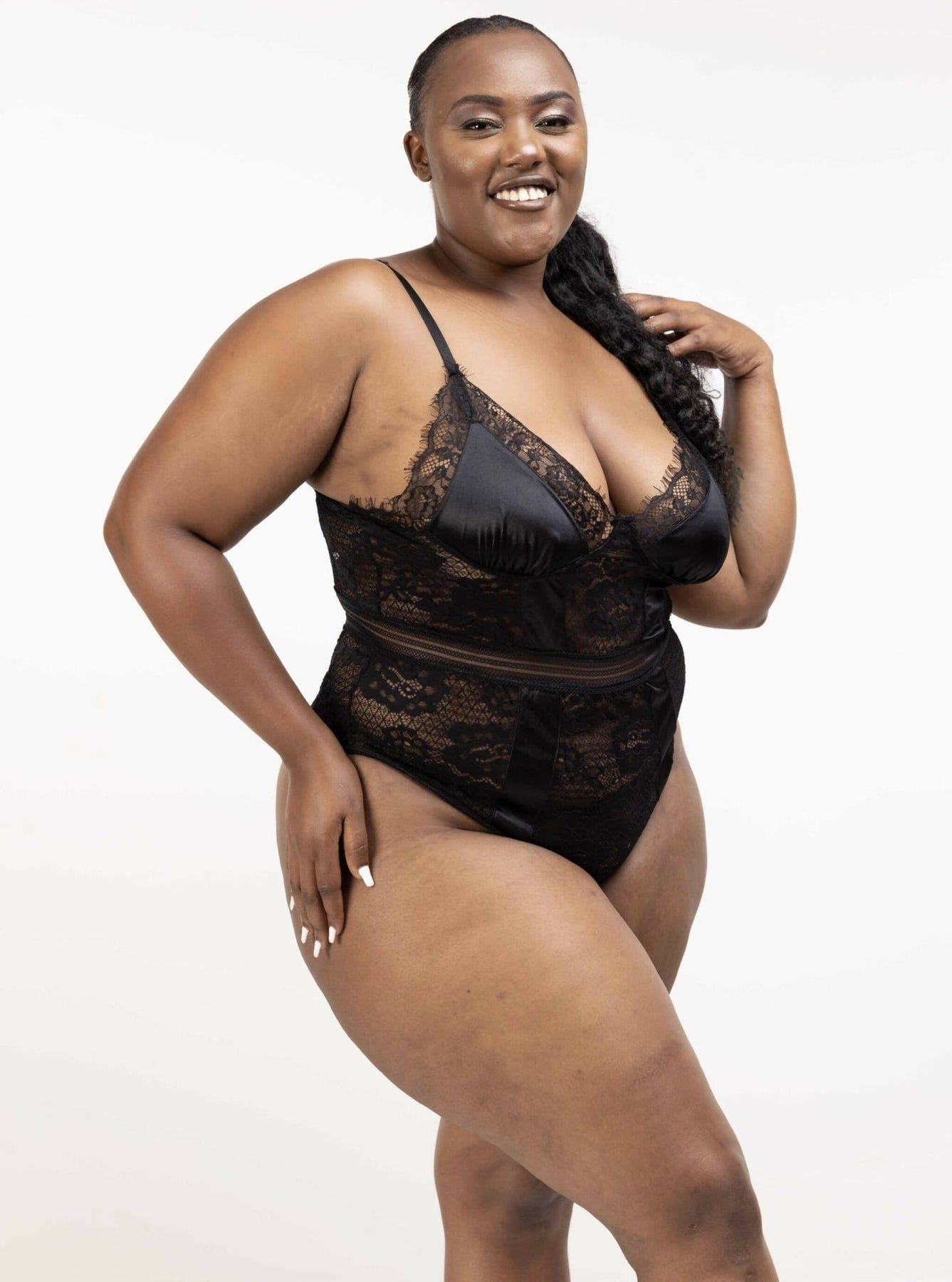 Intimates Kenya High Quality Eyelash Lace Splice Sexy Bodysuit - Black
