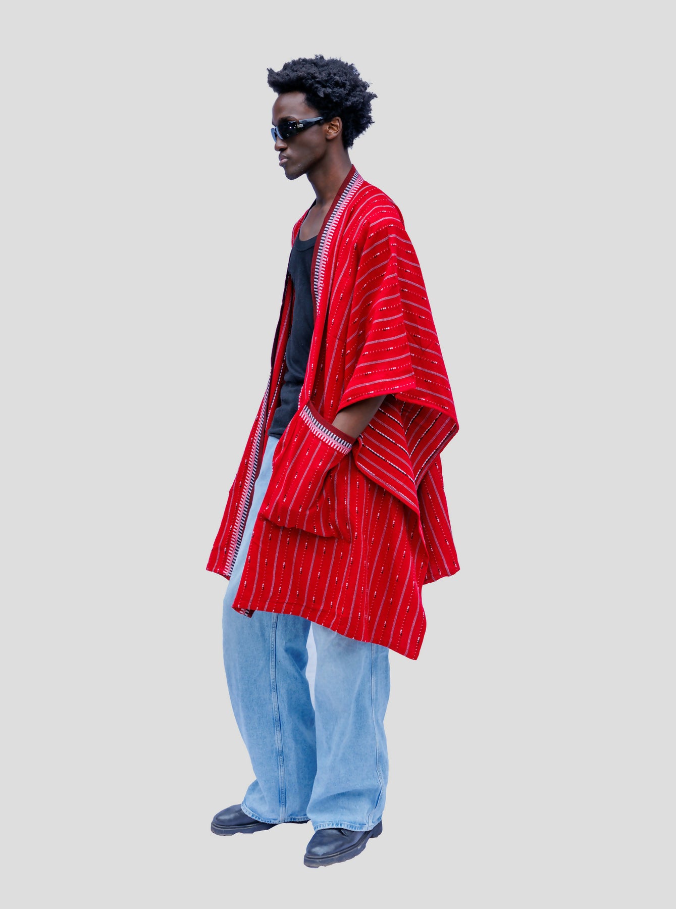 Liquid Lemn Curvy Plus Size Jasiri With Pocket Kimono - Red