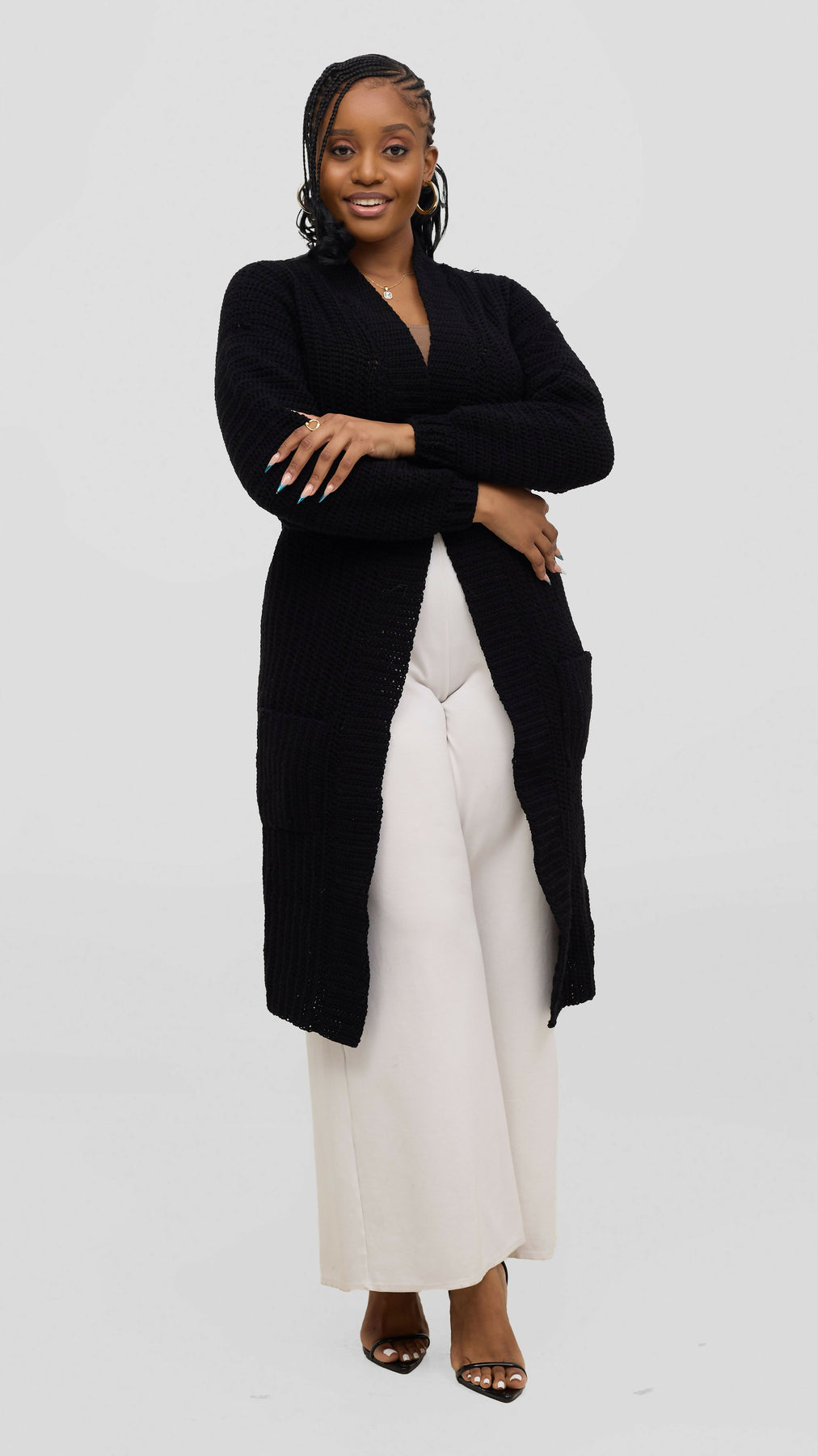 Timyt Urban Wear Curvy Plus Size Drape Crochet Sweater - Black