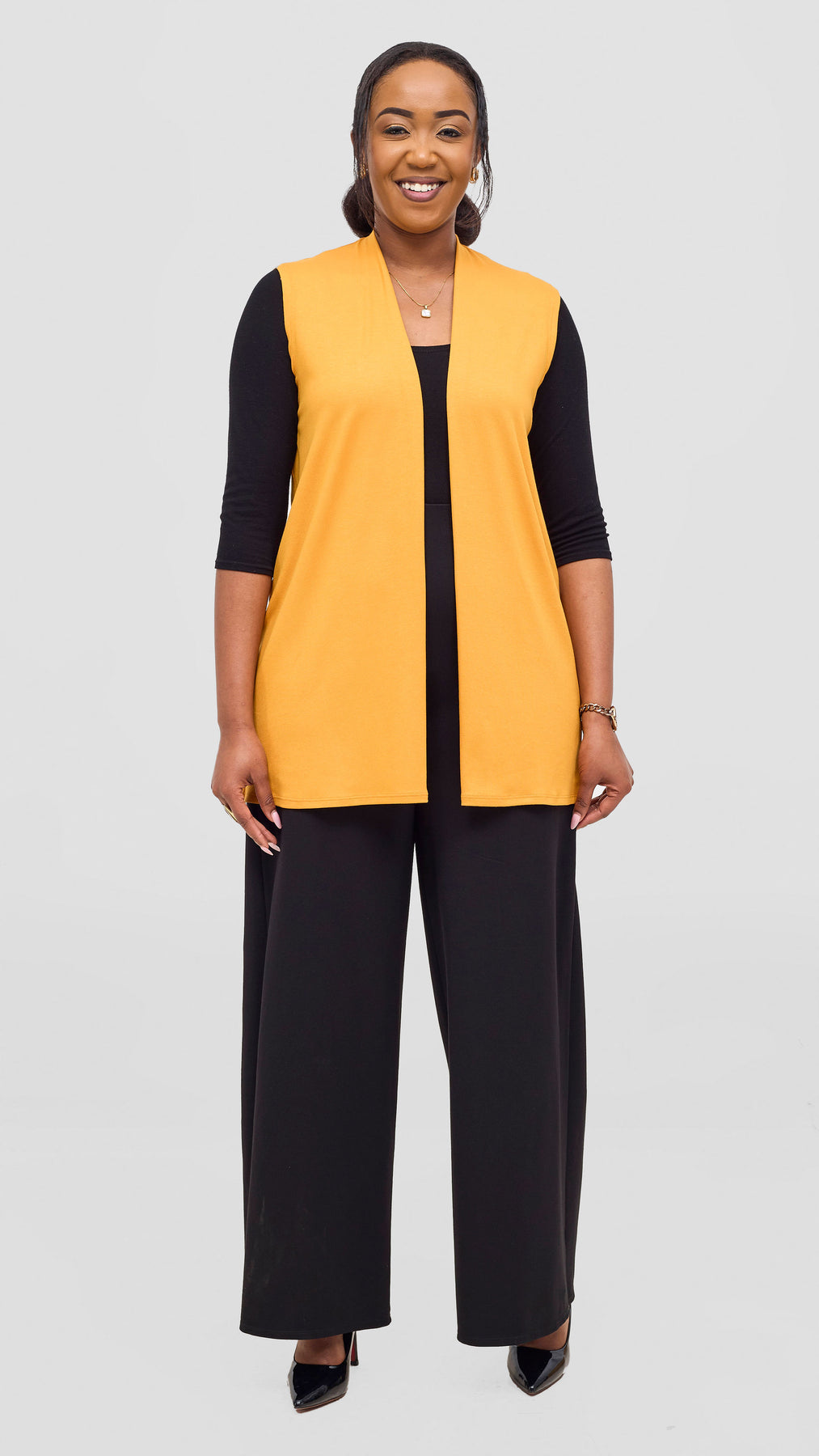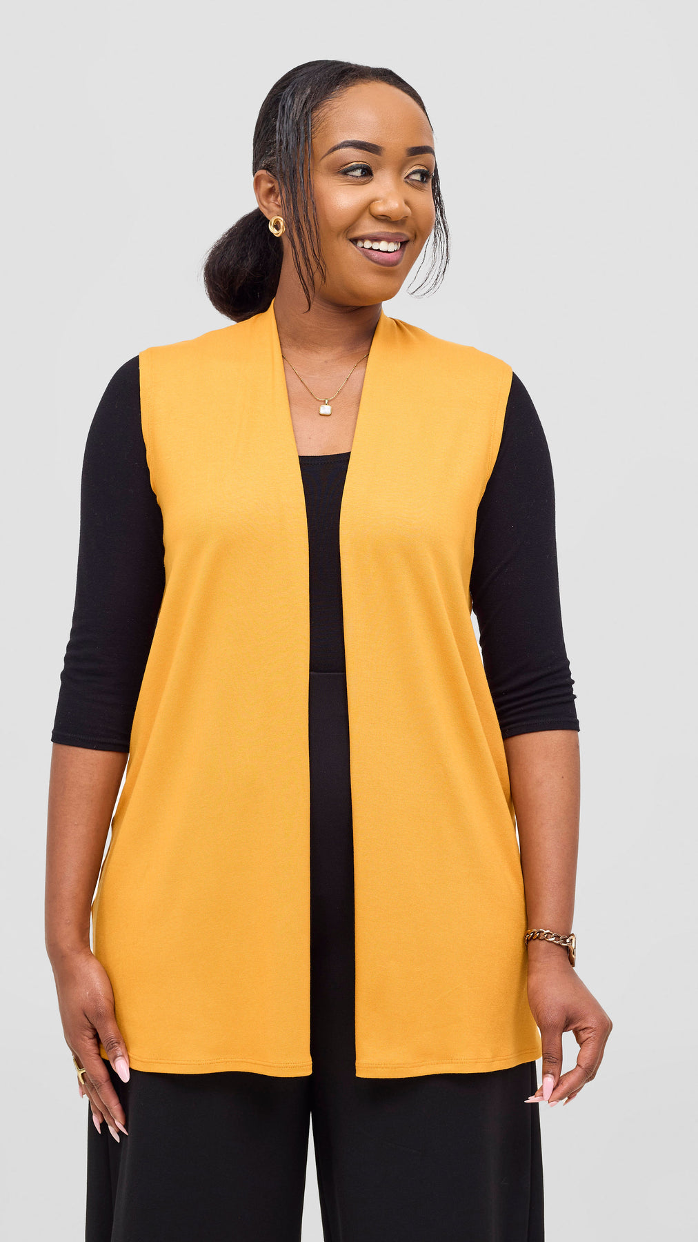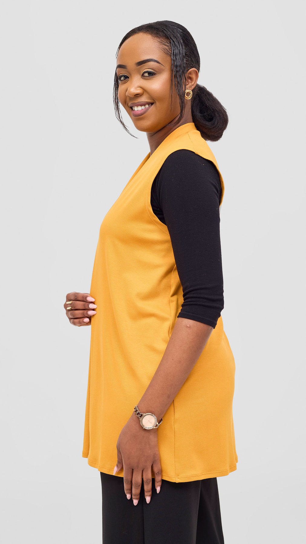 The Vivo Everyday Sleeveless Jersey Waterfall in mustard offers effortless style and comfort for daily wear. Its soft, breathable fabric drapes beautifully, ensuring you stay cool and confident throughout the day. Perfect for layering or wearing on its own, this sleeveless top adds a touch of vibrant warmth to any outfit while providing ease of movement and lasting comfort.