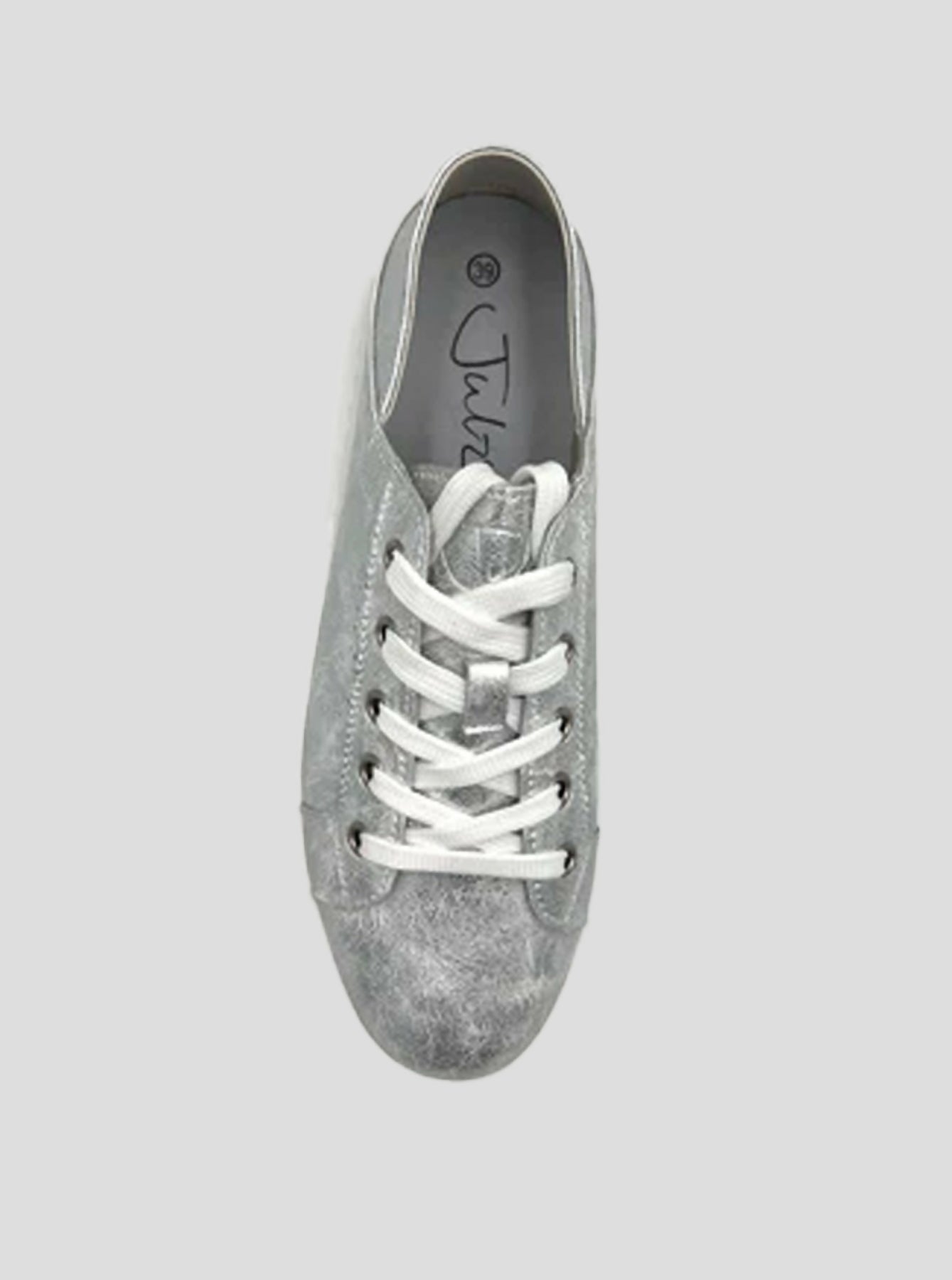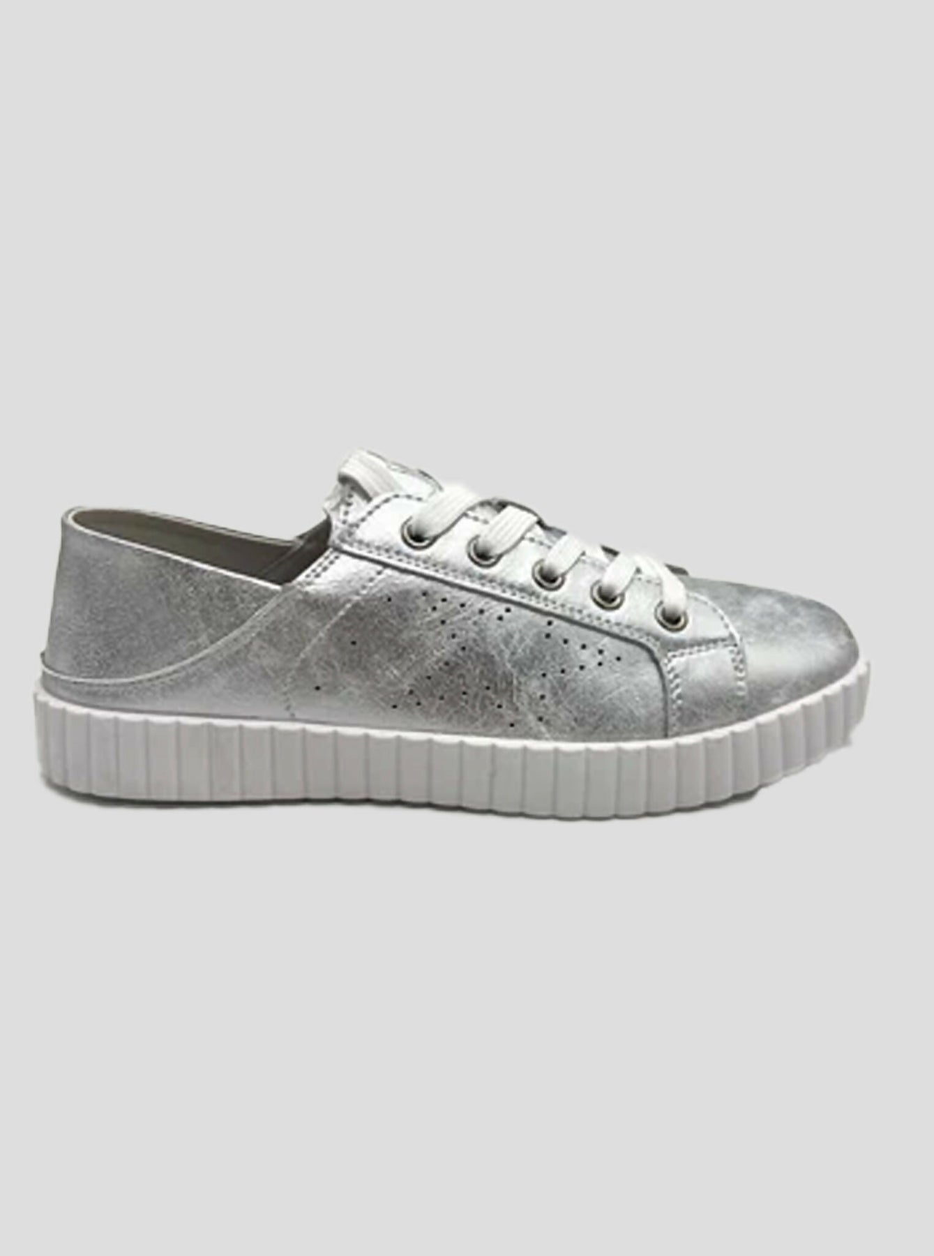 Shimmer & Shine: Step up your sneaker game with the Valentina Matte Silver sneakers! Designed with a chic metallic silver finish, these sneakers bring effortless glamour to any outfit.