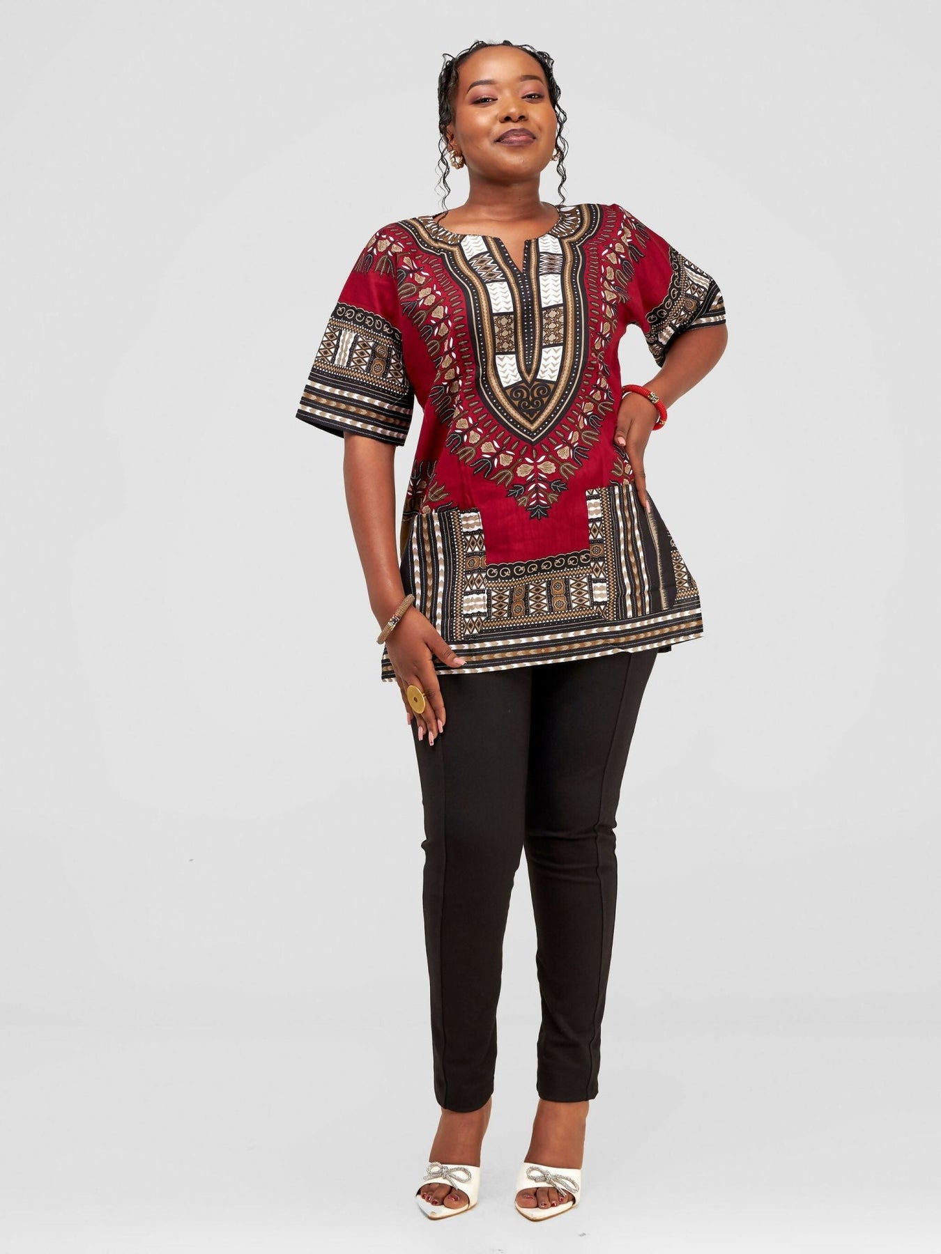 The Dashiki Top is crafted with high-quality Ankara fabric, featuring bold and intricate patterns that reflect the rich cultural heritage of Dashiki designs, Perfect for both casual and formal occasions.