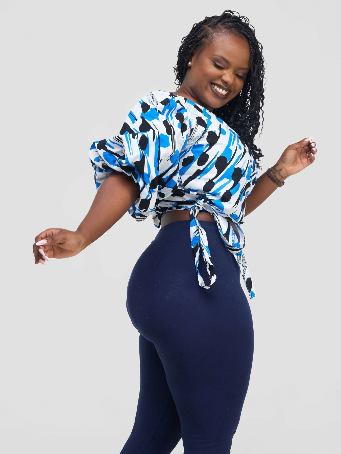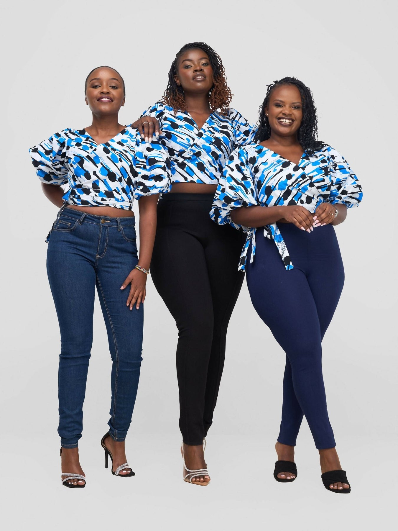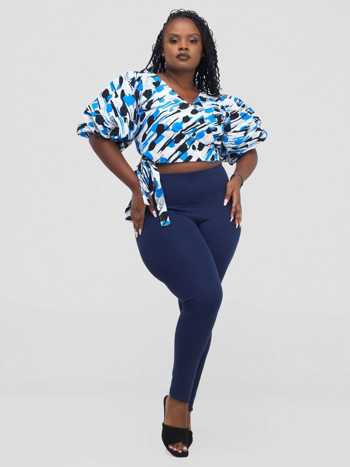 Chic Clique Waridi Wrap Top - Blue / White - Shopzetu