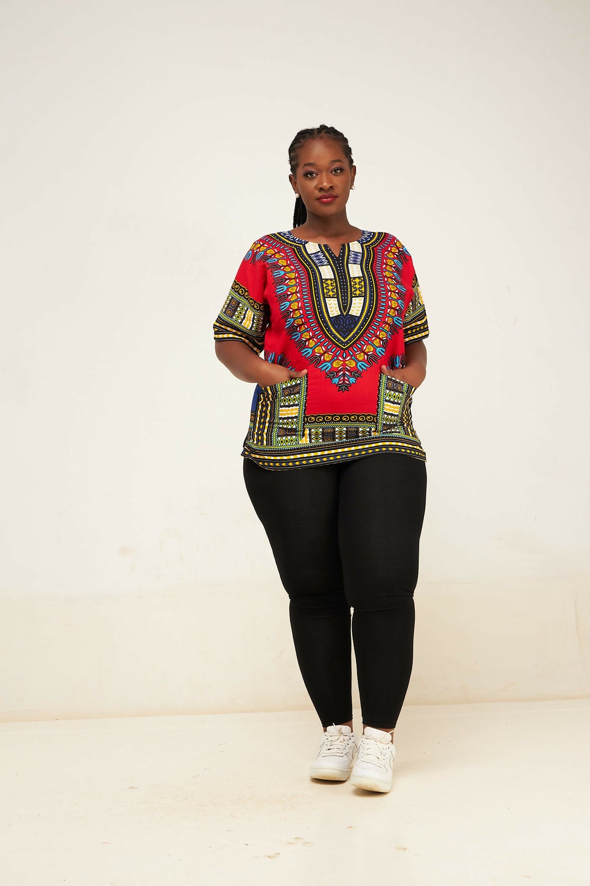 The Dashiki Top is crafted with high-quality Ankara fabric, featuring bold and intricate patterns that reflect the rich cultural heritage of Dashiki designs, Perfect for both casual and formal occasions.