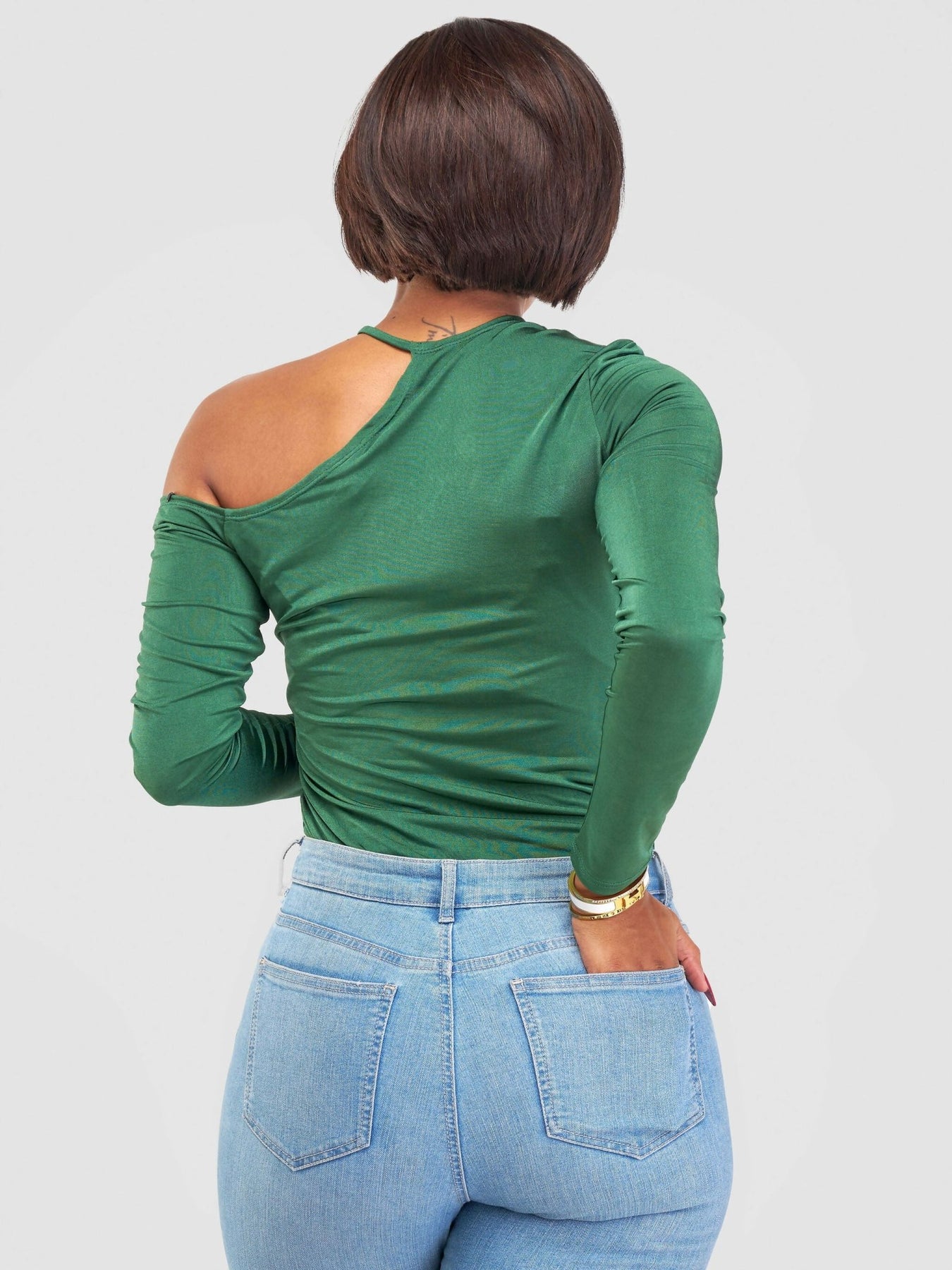 Features: Long sleeves, Asymmetrical Neckline, off shoulder.