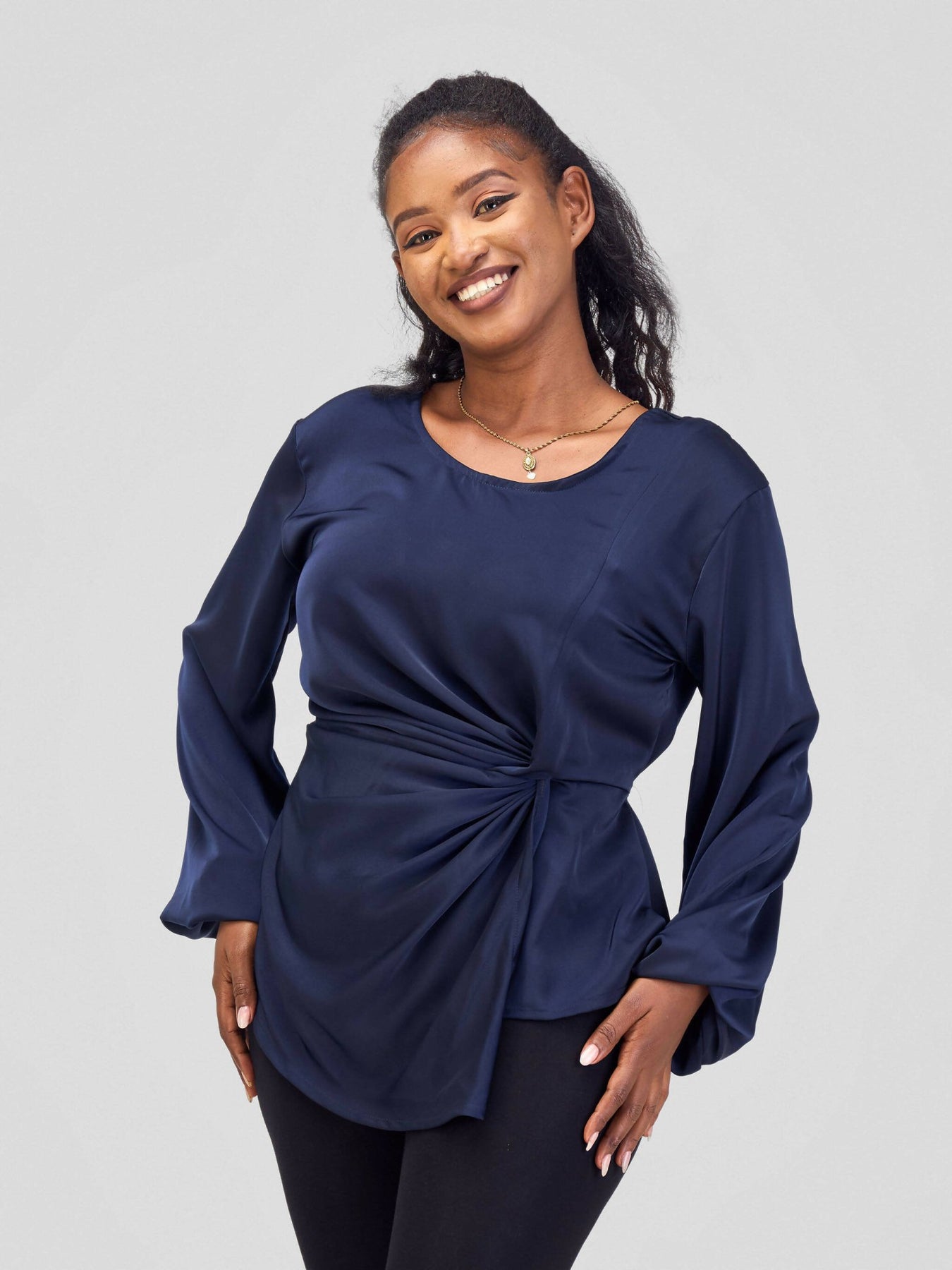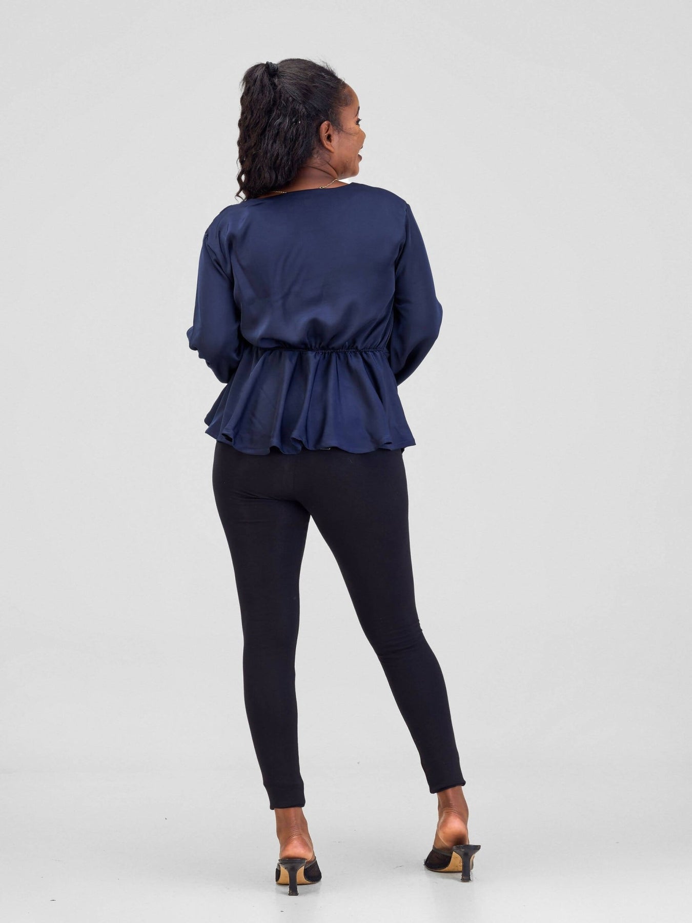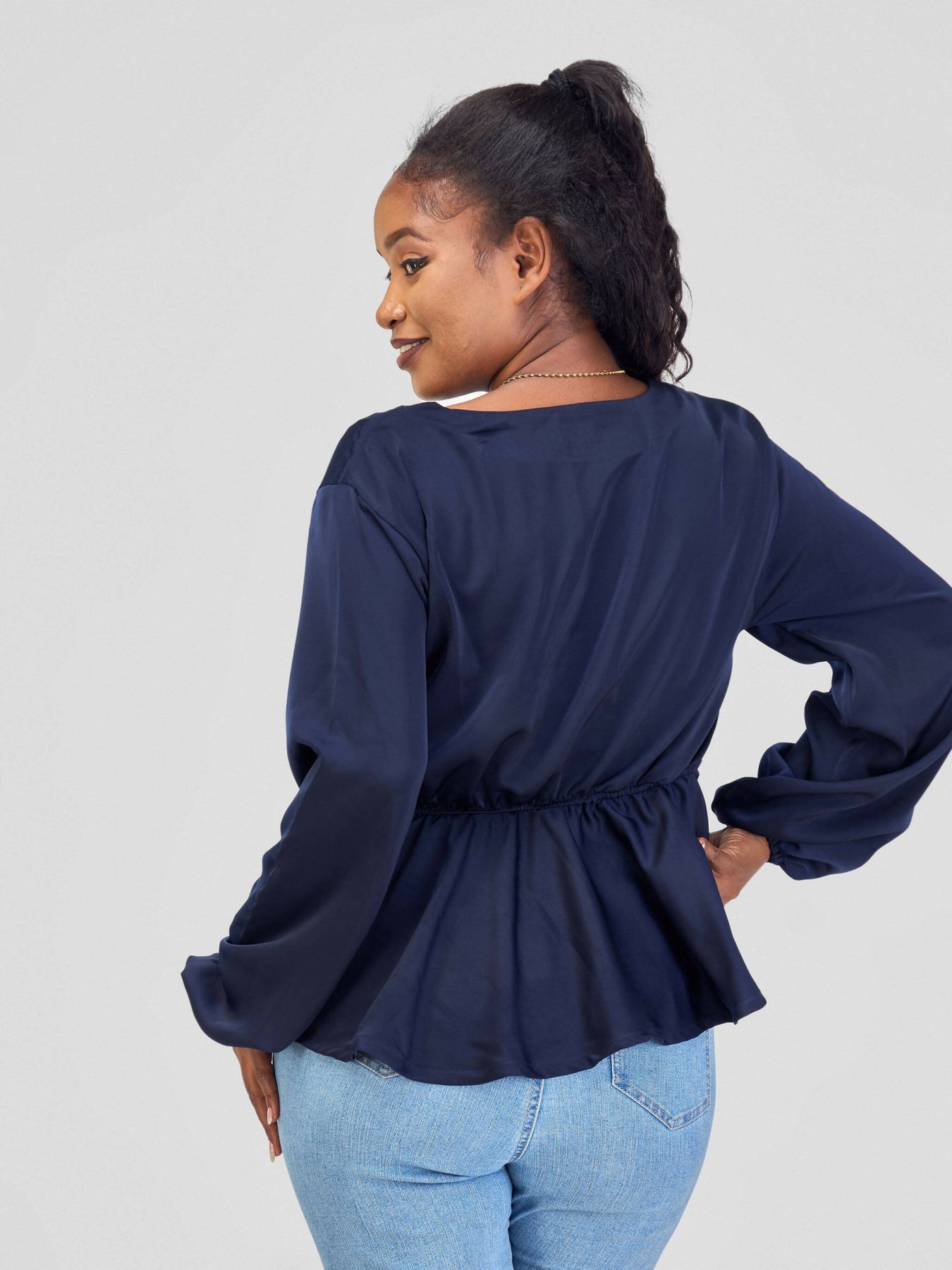 Silk House Collection Raya Top - Navy Blue - Shopzetu