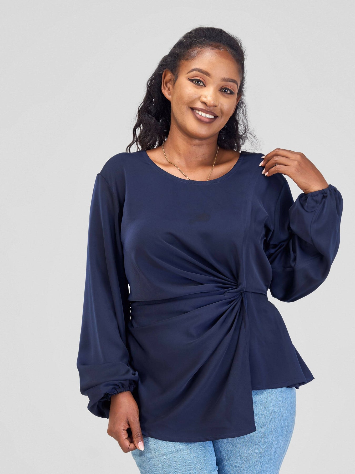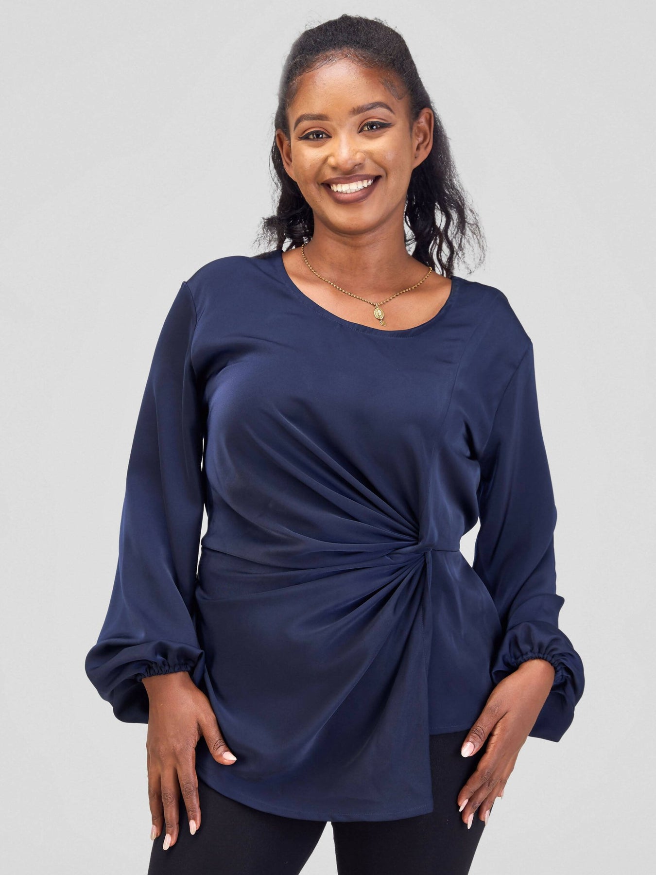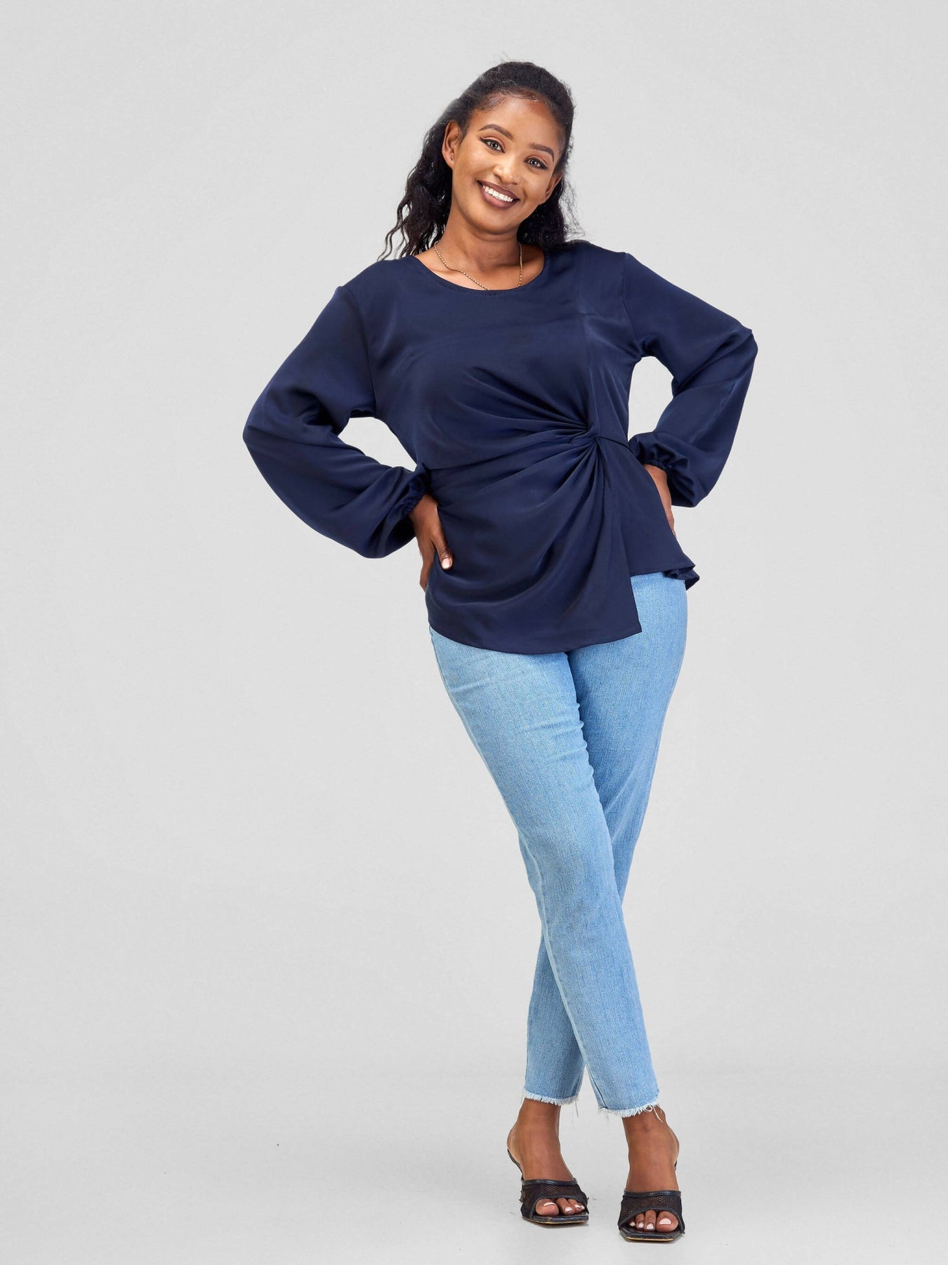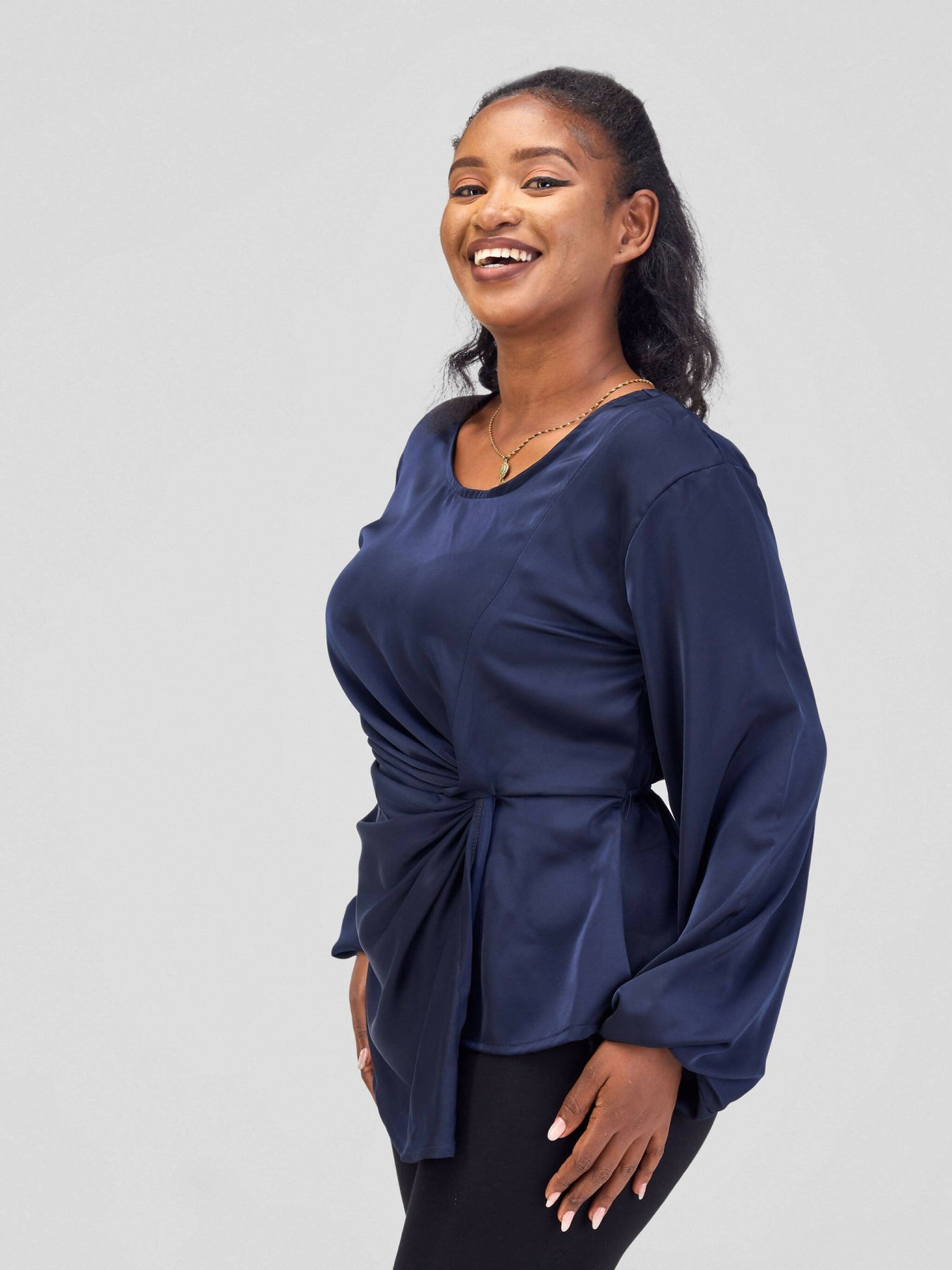 Silk House Collection Raya Top - Navy Blue - Shopzetu