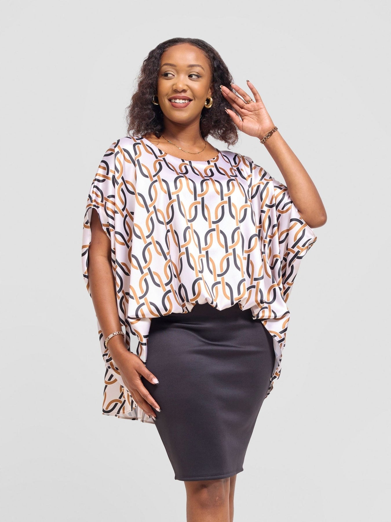 Vivo Amai Hi-Low Top - Cream Wingu Print