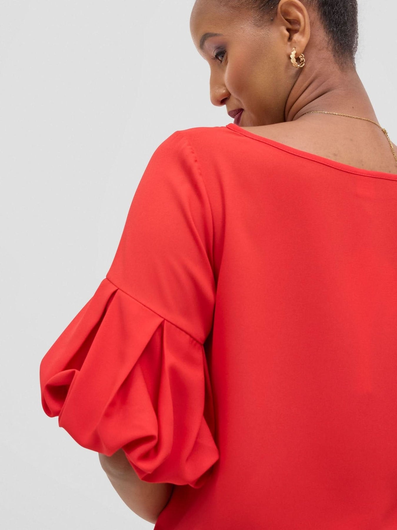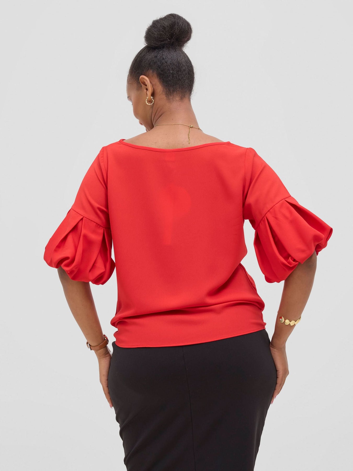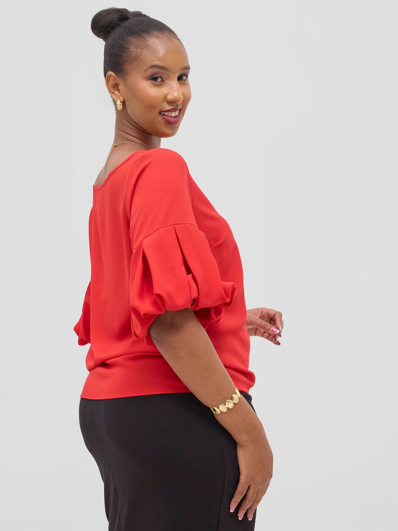 Vivo Basic Boundneck Puff Sleeve Top - Red - Shopzetu