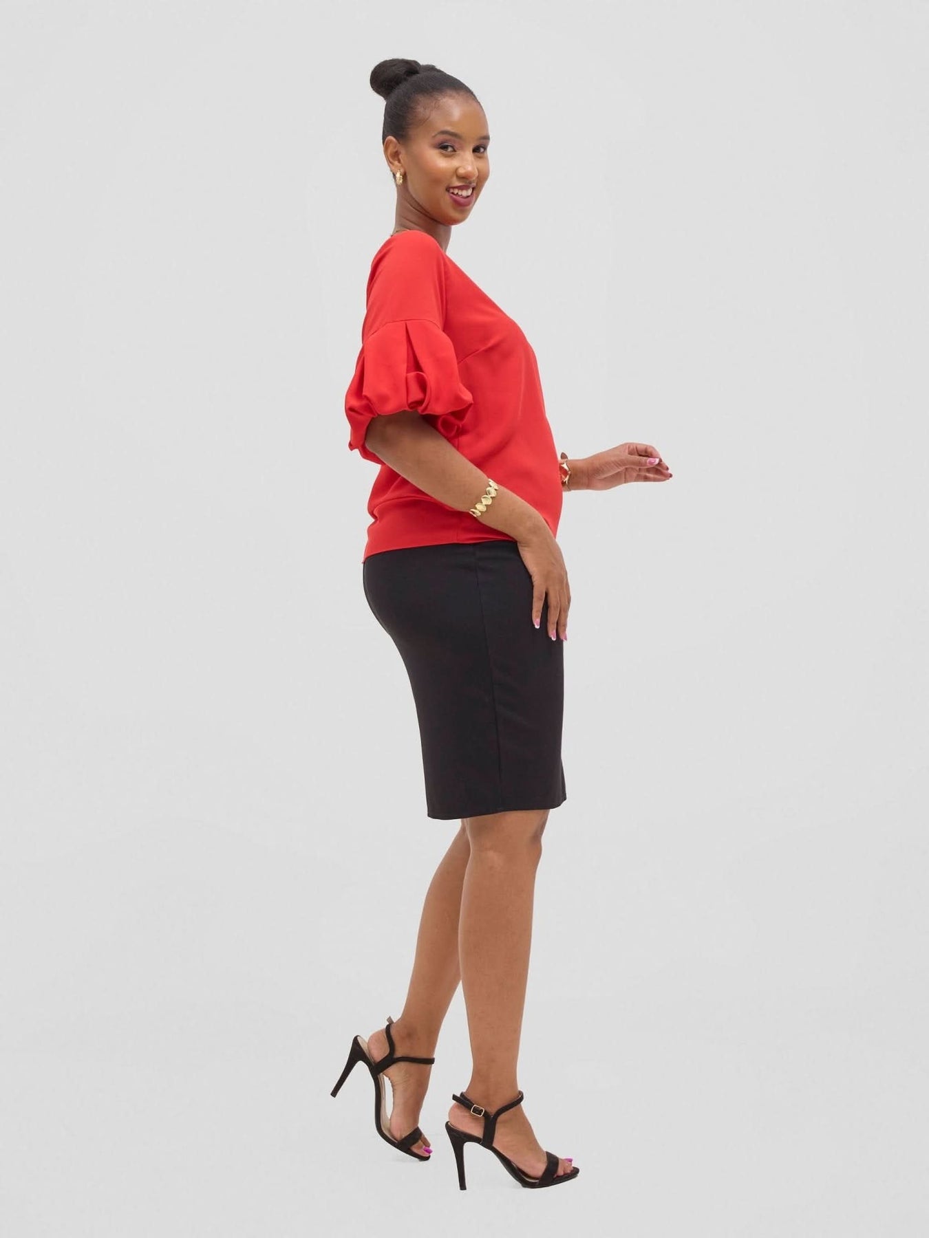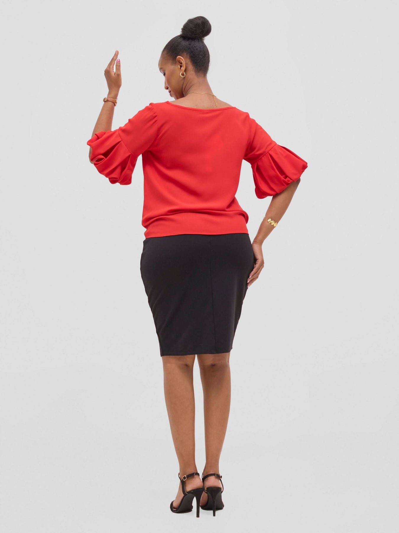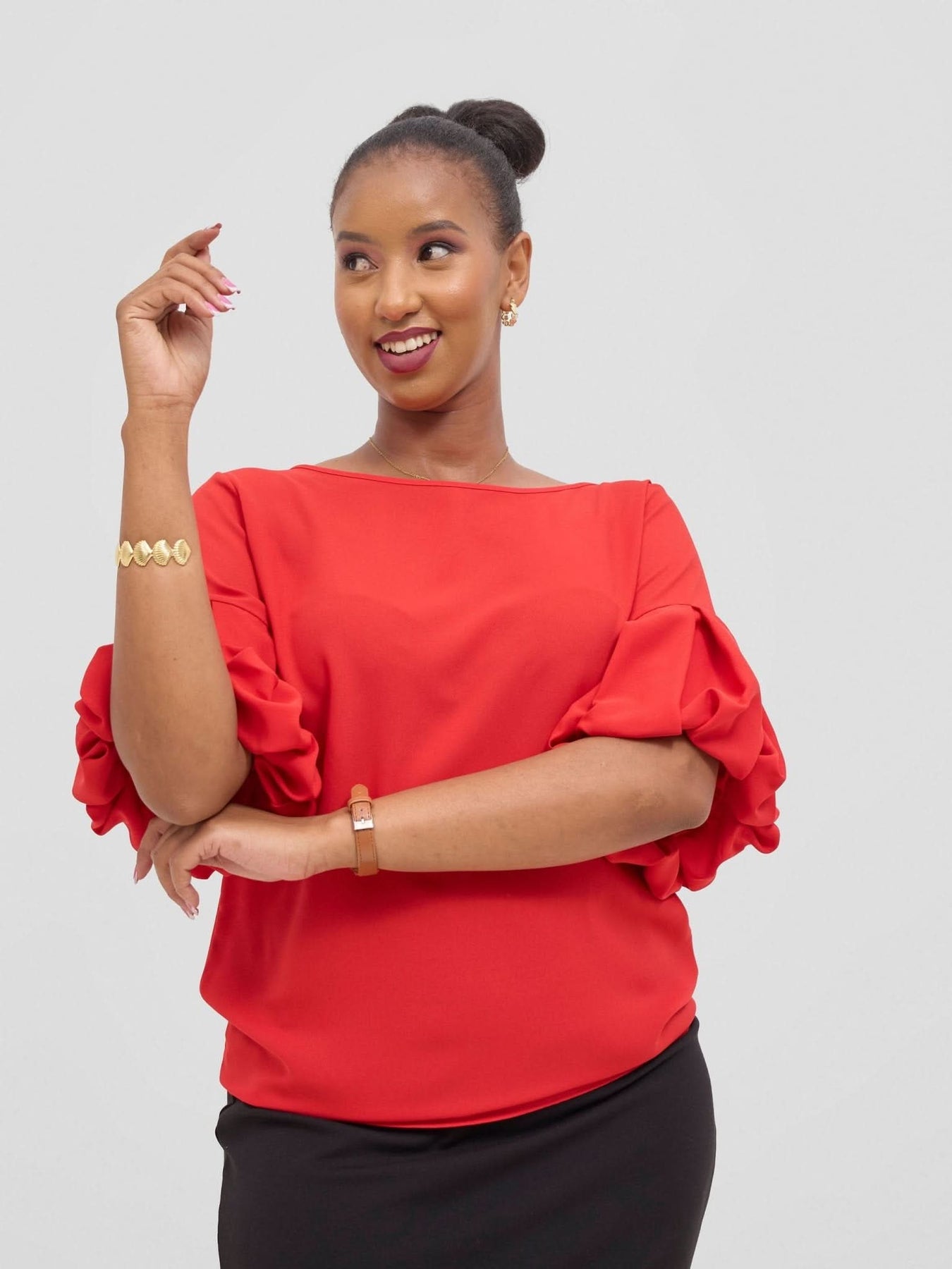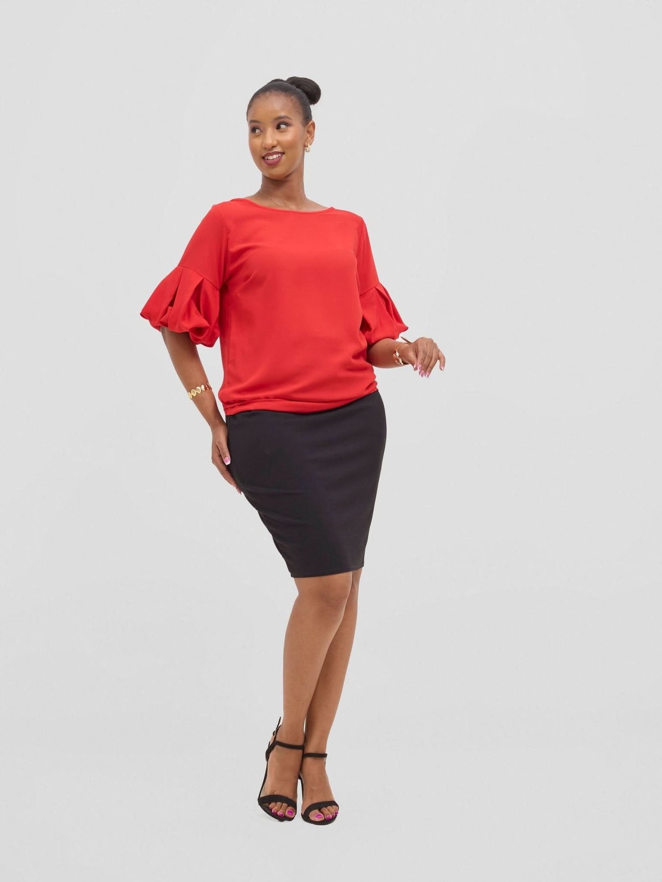 Vivo Basic Boundneck Puff Sleeve Top - Red - Shopzetu