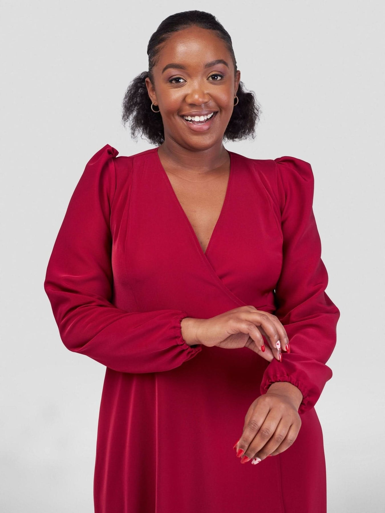 Featuring beautiful burgundy fabric and a flattering V design, this chic maxi dress works bang on trend new season style. Team with barely there heels and statement earrings for a look that will have all eyes on you