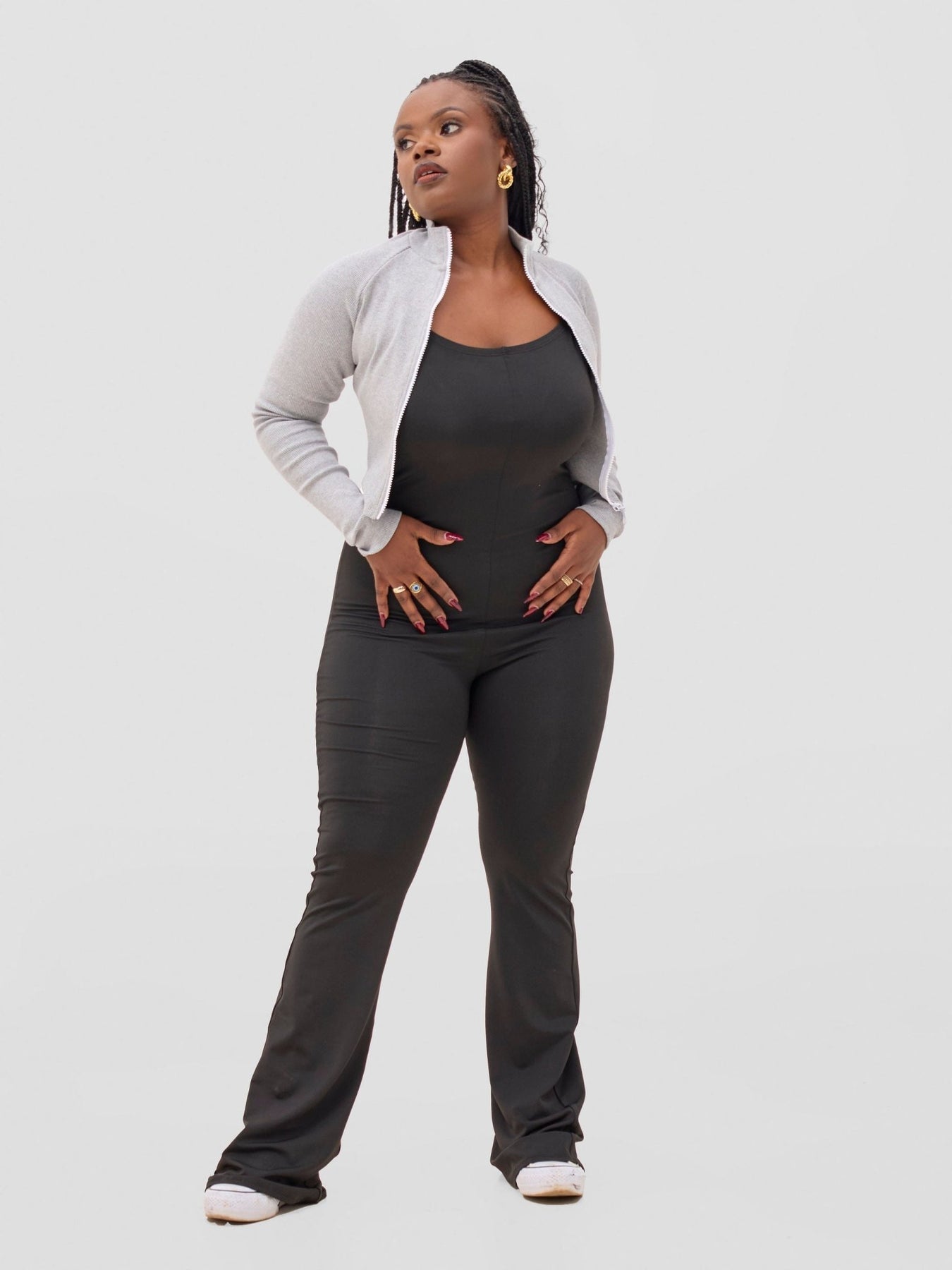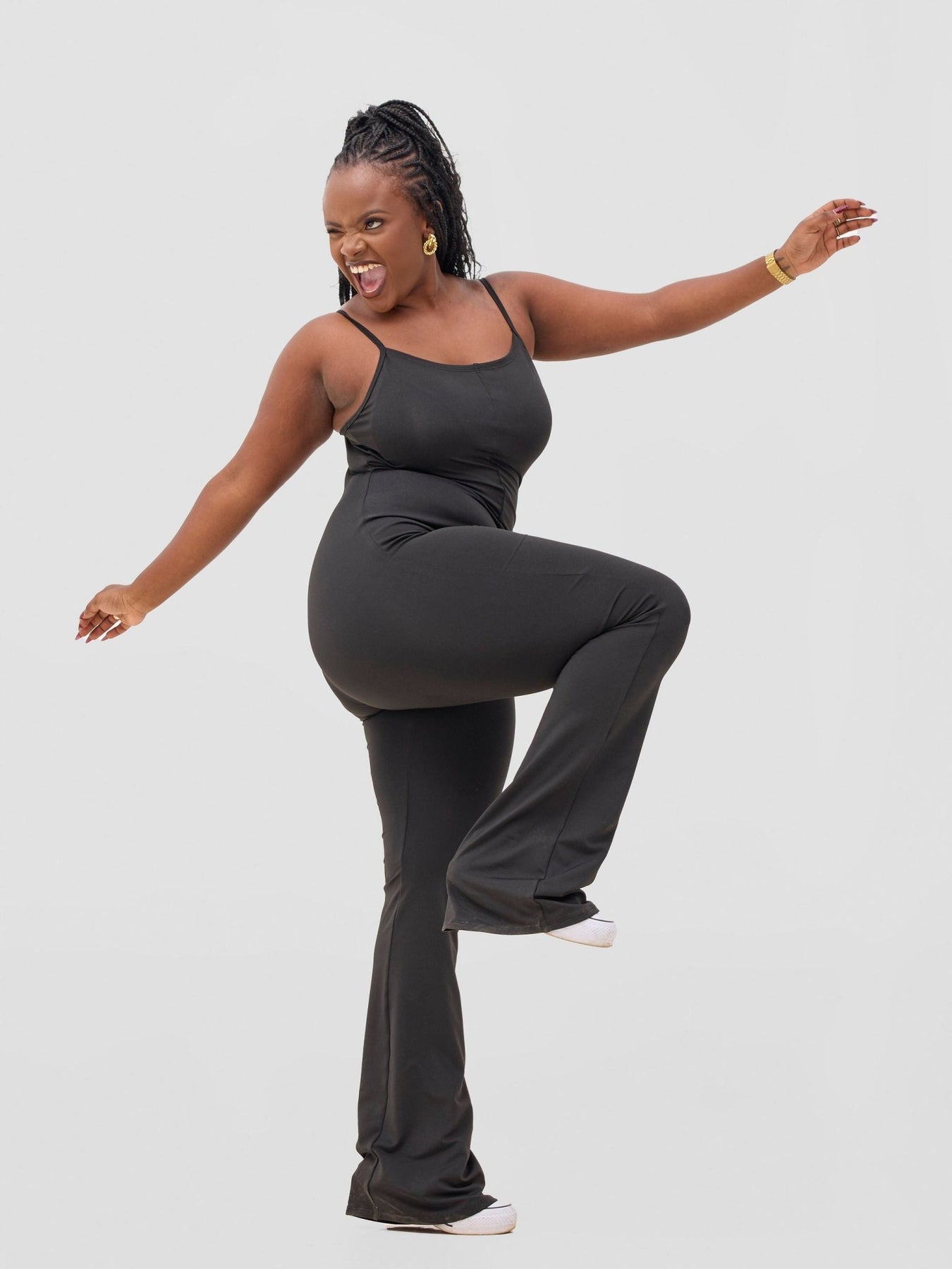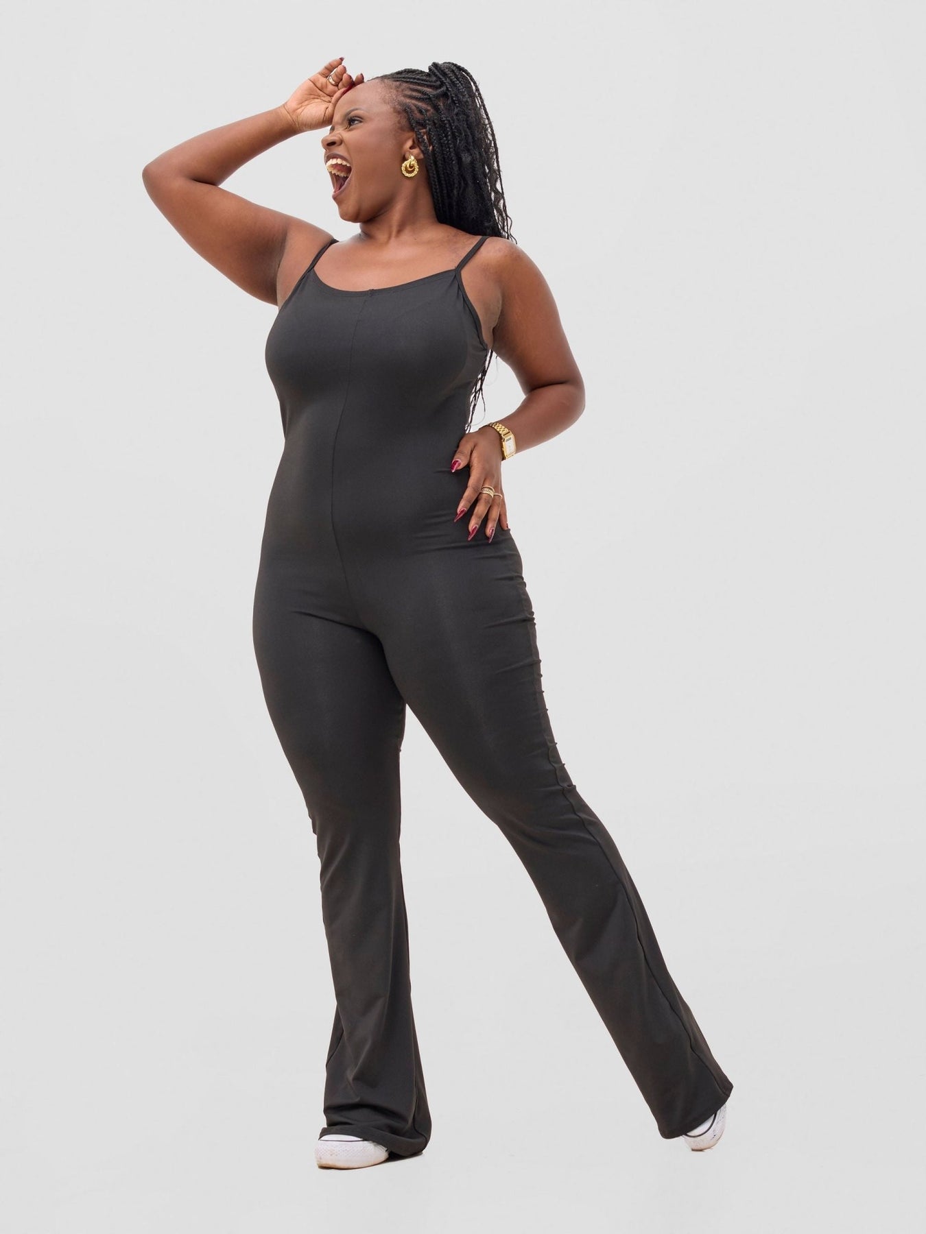 Zoya Sadira Bell Bottom Unitard - Black - Shopzetu