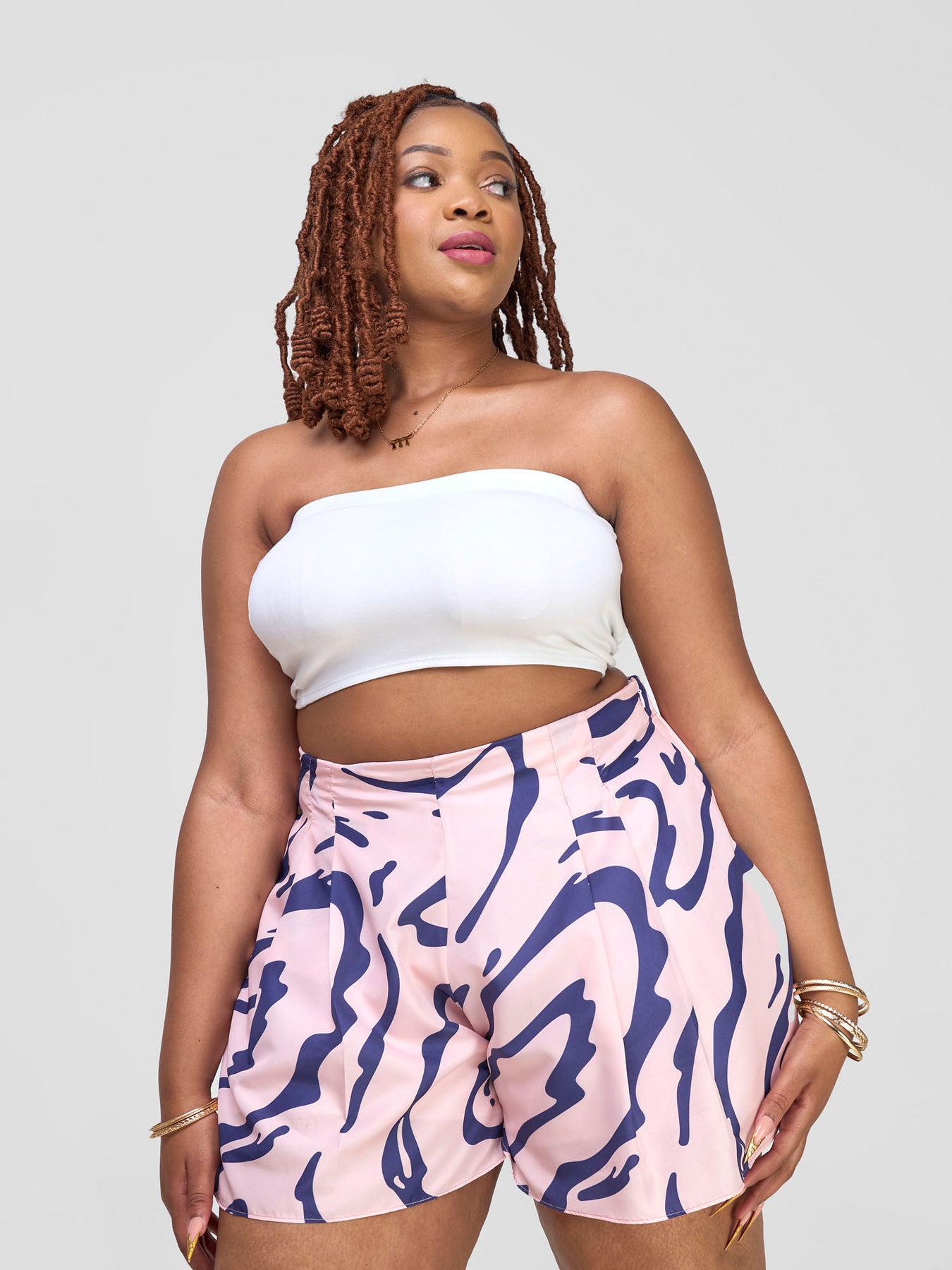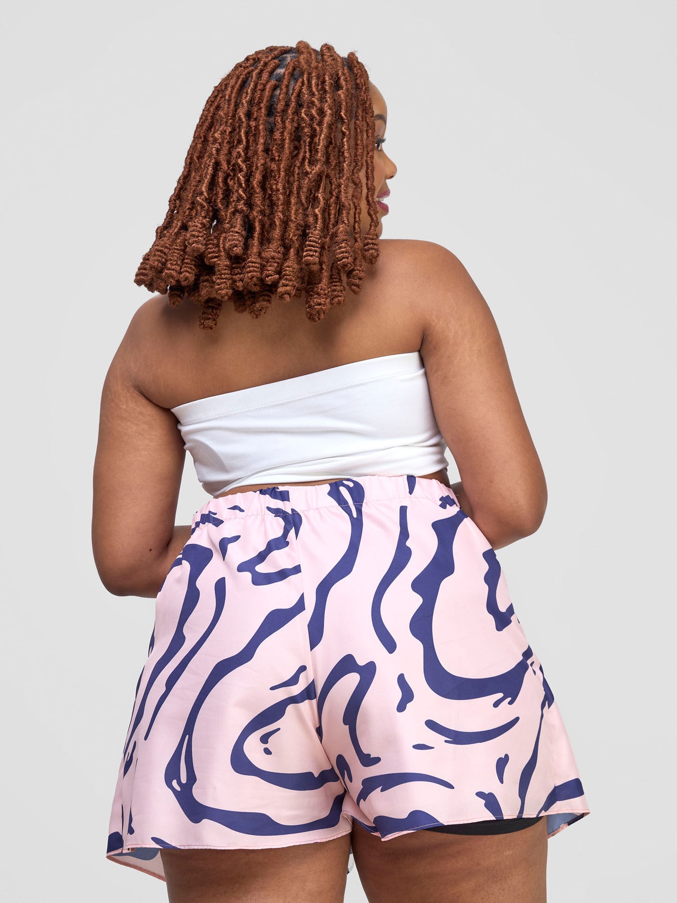 Zoya Shani Pleated Shorts - Navy / Peach Sani Print