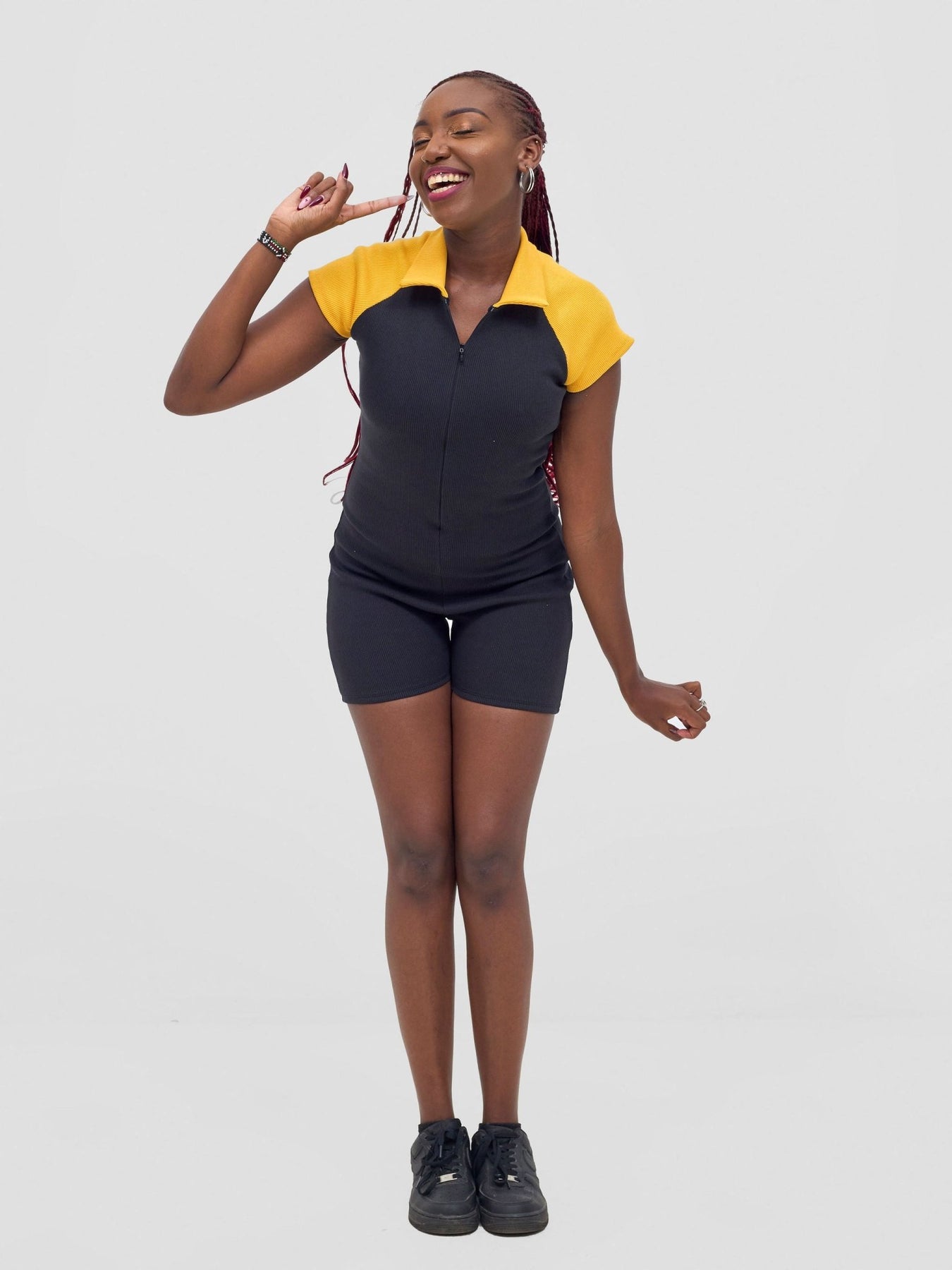 Zoya Vasha Raglan Sleeve Playsuit - Black / Yellow - Shopzetu