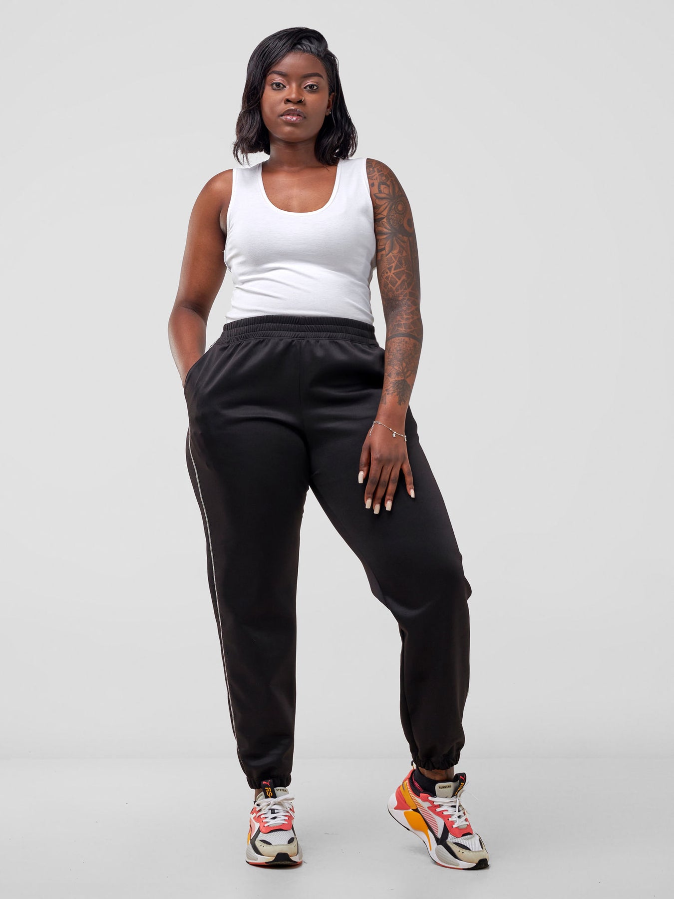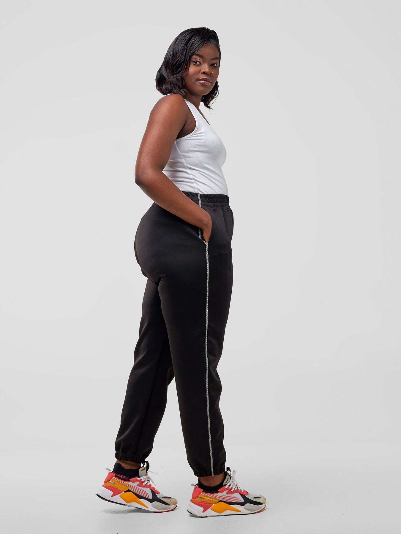 These joggers offer style and comfort in one cool package. Pair them with a graphic tee and chunky sneakers for an effortless and on-trend look, or dress them up with a crop top and statement accessories for a fun night out.