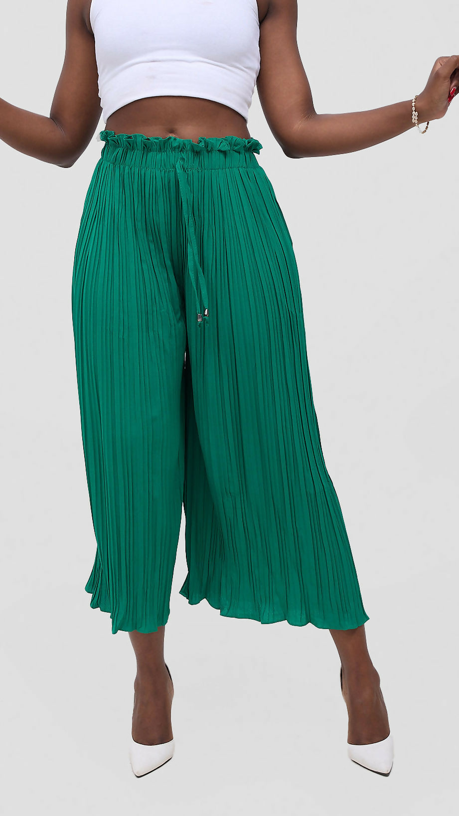 Hessed offers you the latest trends and best taste for your everyday casuals outdoors activities in women wear at great and unbeatable prices!A Long loose - fit pleated trousers with covered elasticated at the waist,wide leg.