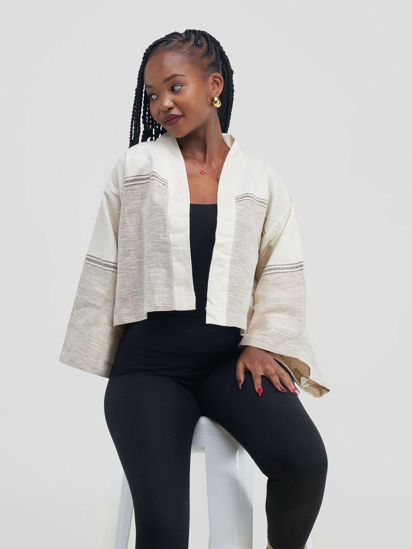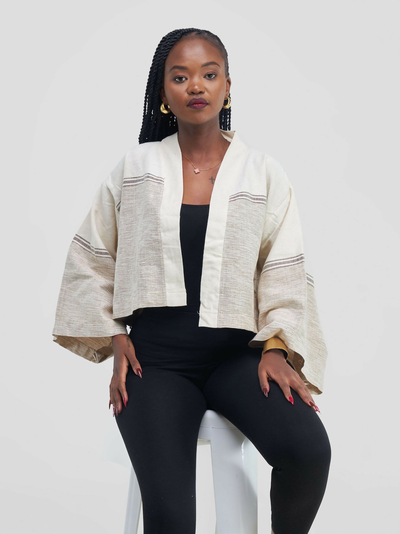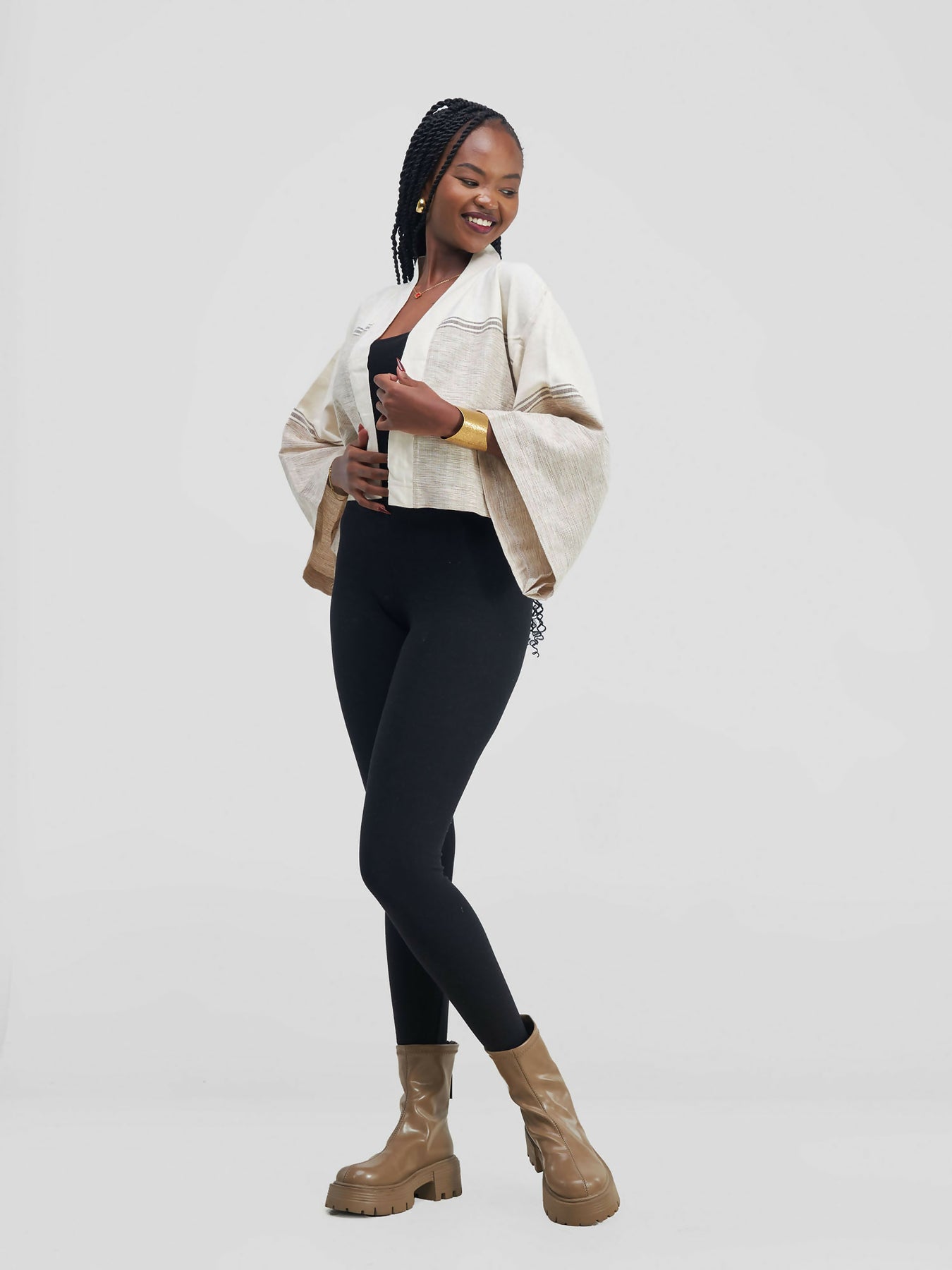 Elevate your wardrobe with the Liquid Lemn Ecru Essential Crop Kimono Jacket. This effortlessly chic piece is crafted from luxurious Kenyan woven cotton, offering a soft, breathable, and luxurious feel. The ecru hue adds a touch of timeless elegance, making it a versatile addition to any outfit.