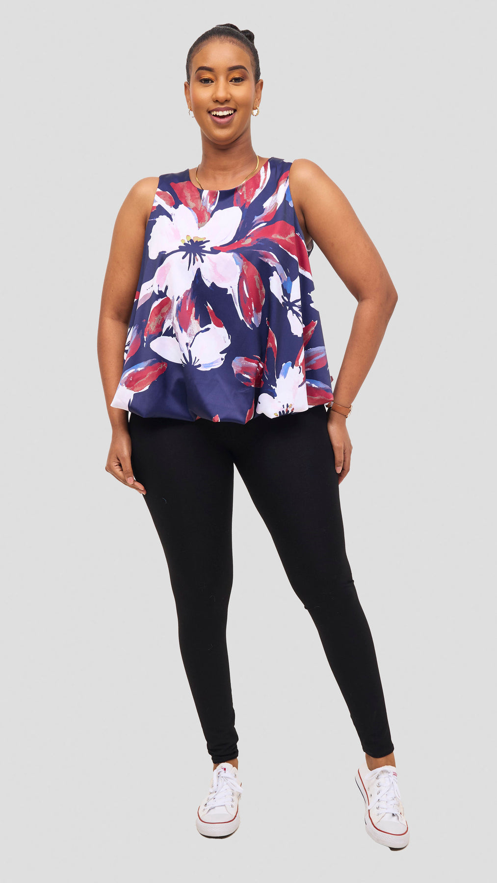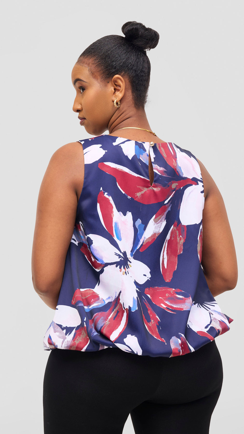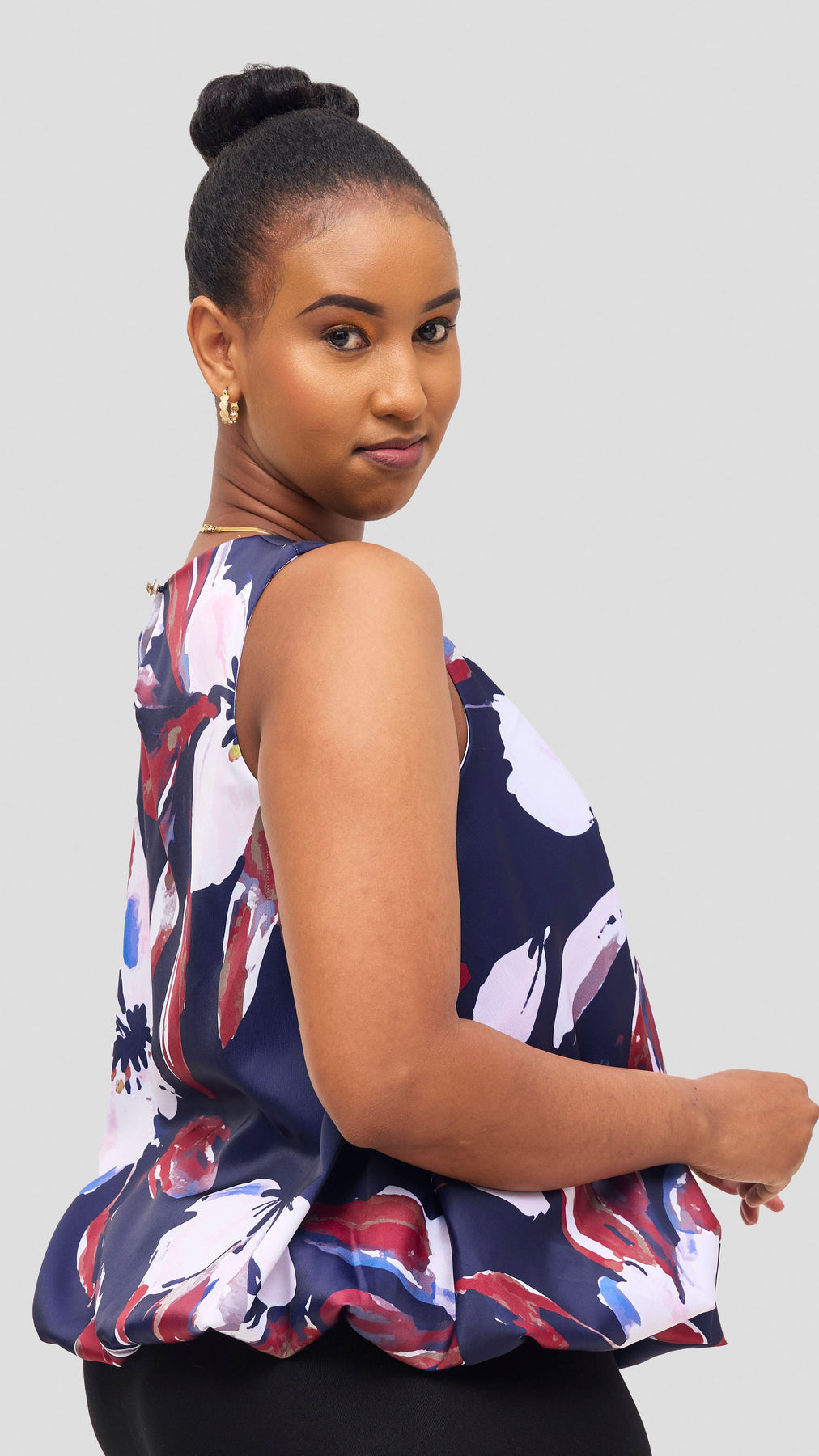 Vivo Iyana Bubble Sleeveless Top - Navy / Dark Red Iya Print